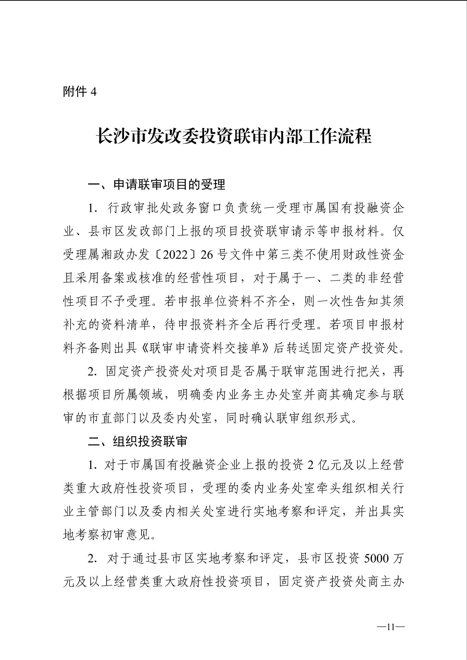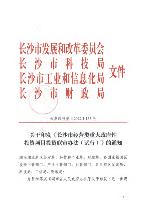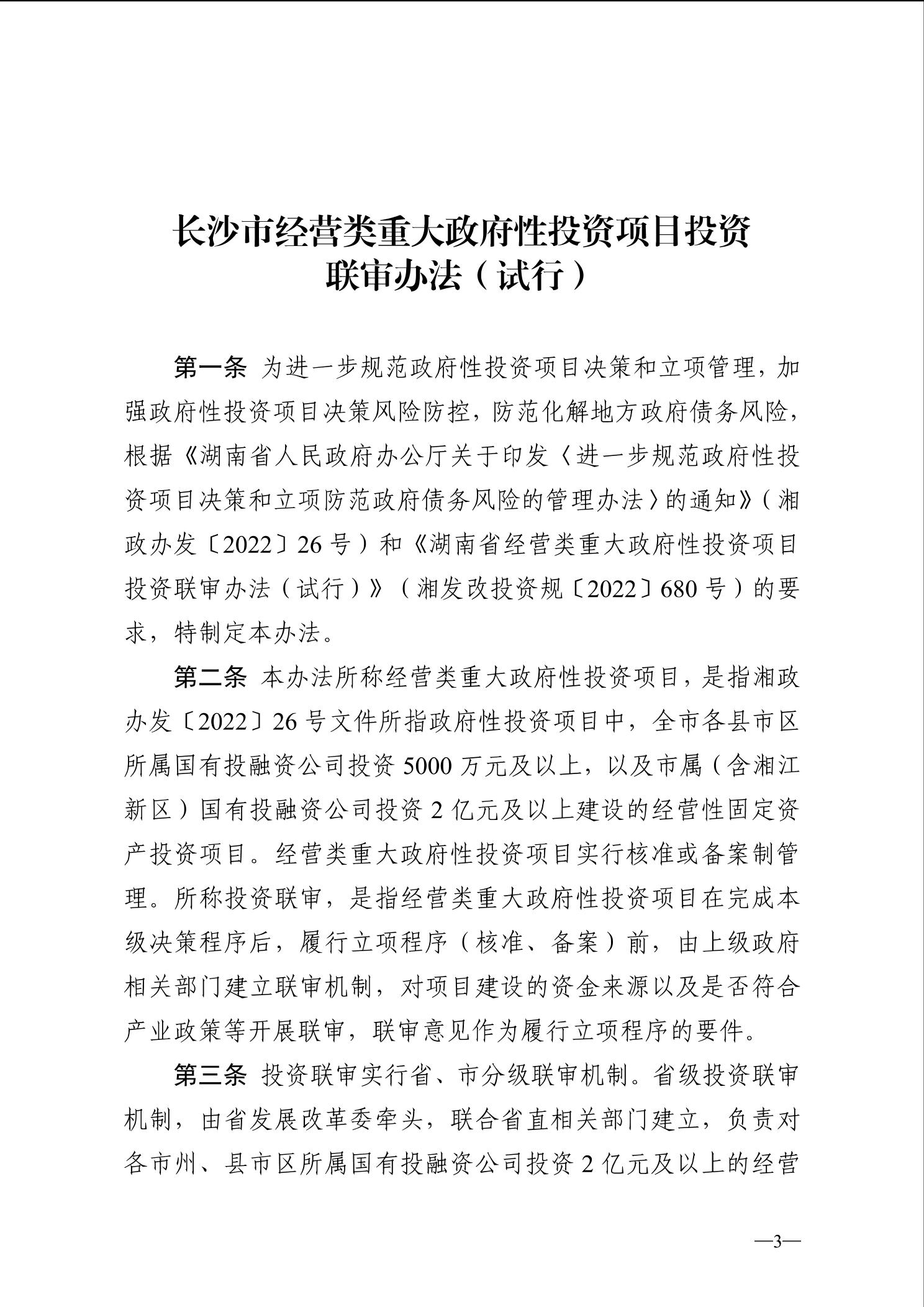 关于印发《长沙市经营类重大政府性投资项目投资联审办法(试行)》的通知
