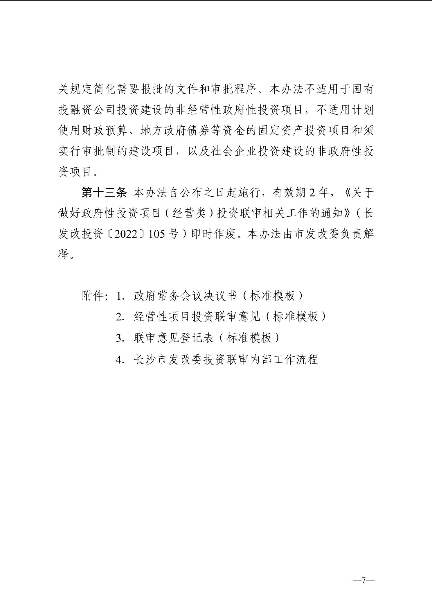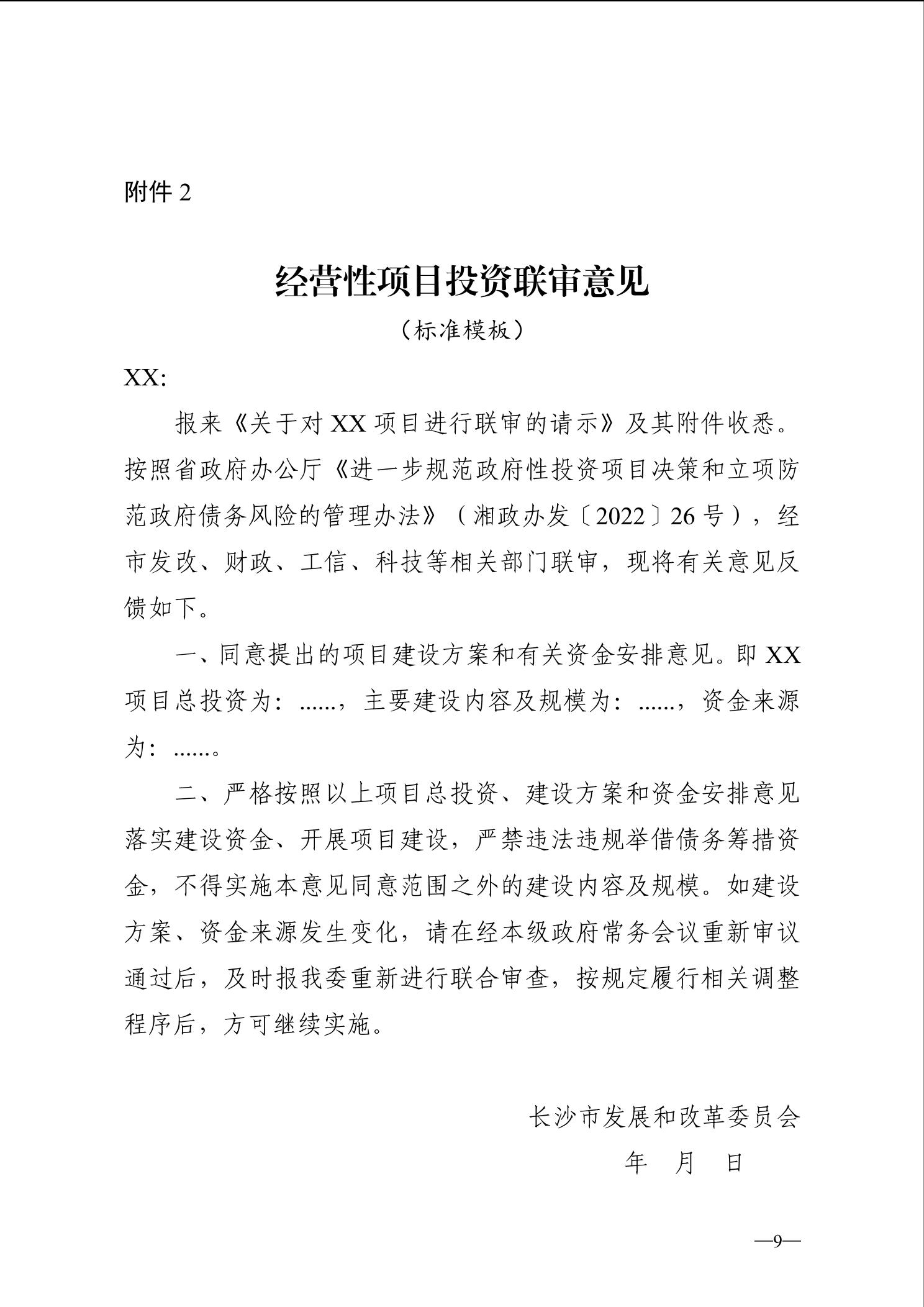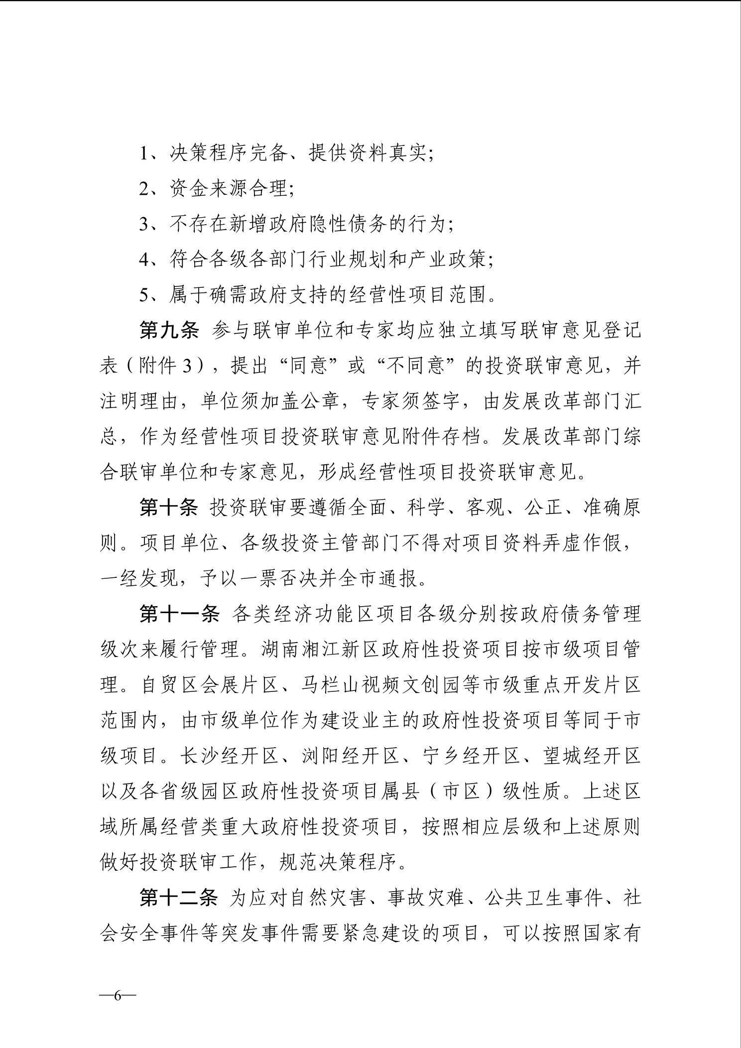 关于印发《长沙市经营类重大政府性投资项目投资联审办法(试行)》的通知