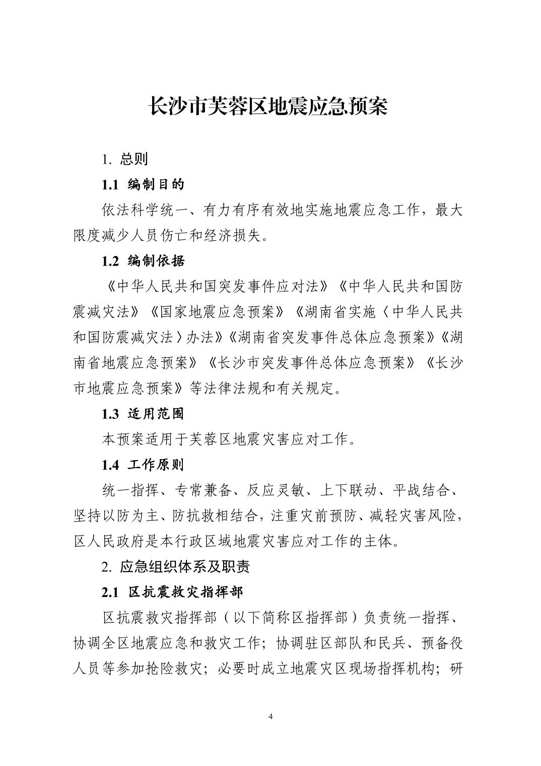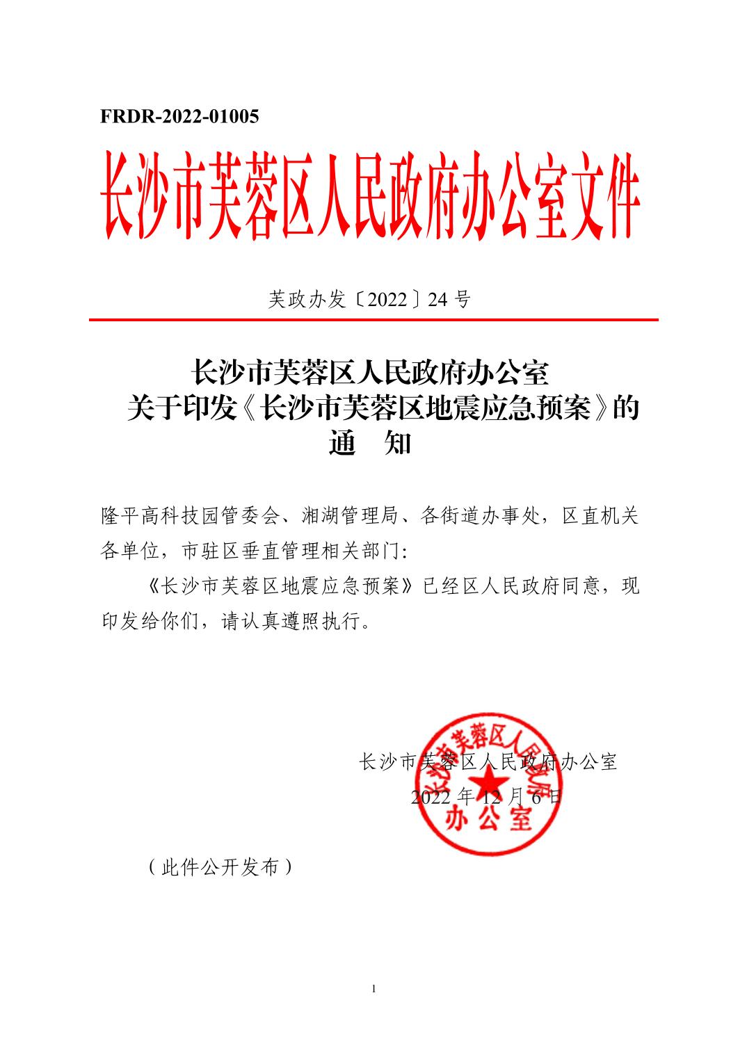 长沙市芙蓉区龙8国际办公室关于印发《长沙市芙蓉区地震应急预案》的通知