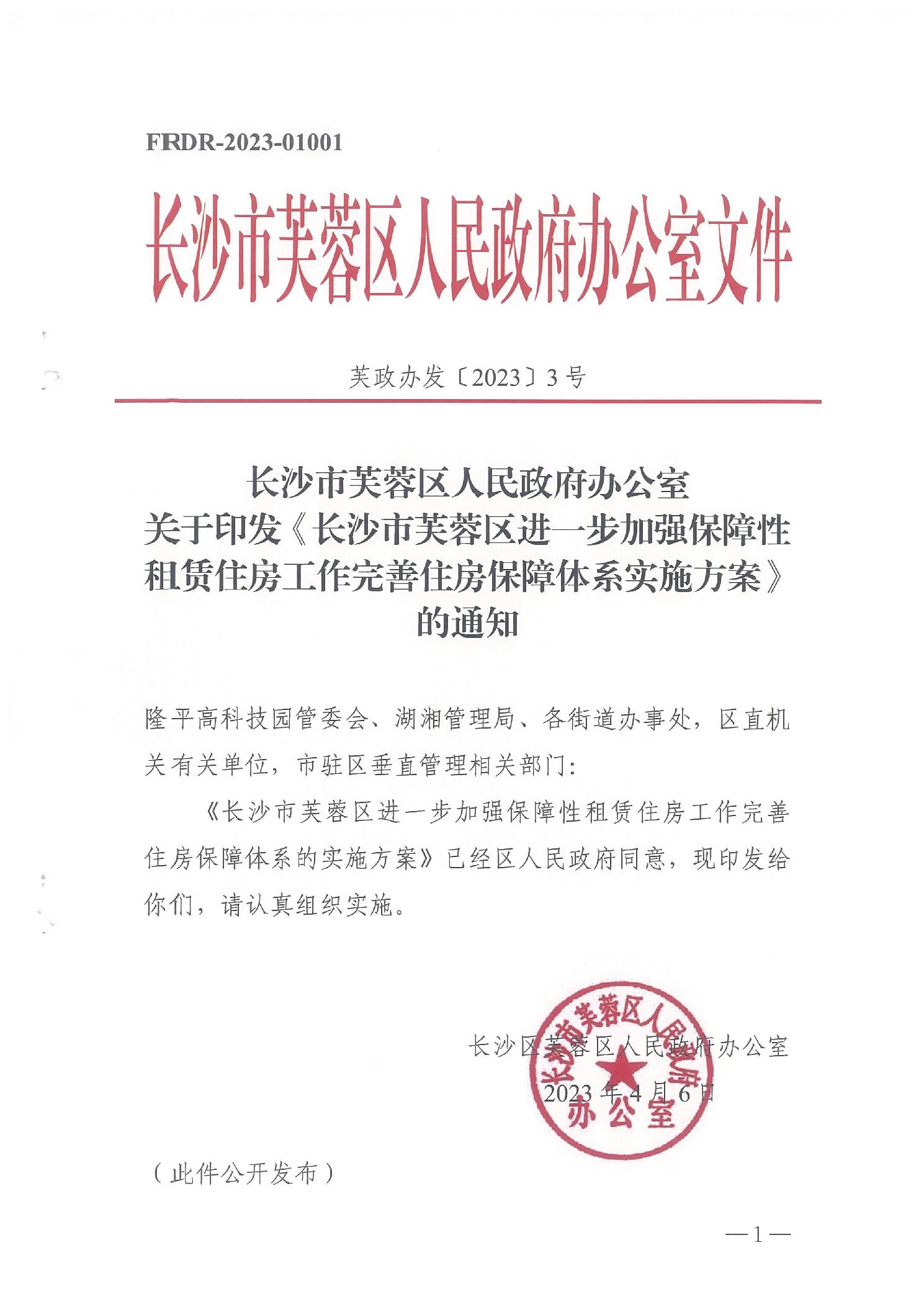 长沙市芙蓉区龙8国际办公室关于印发《长沙市芙蓉区进一步加强保障性租赁住房工作完善住房保障体系实施方案》的通知