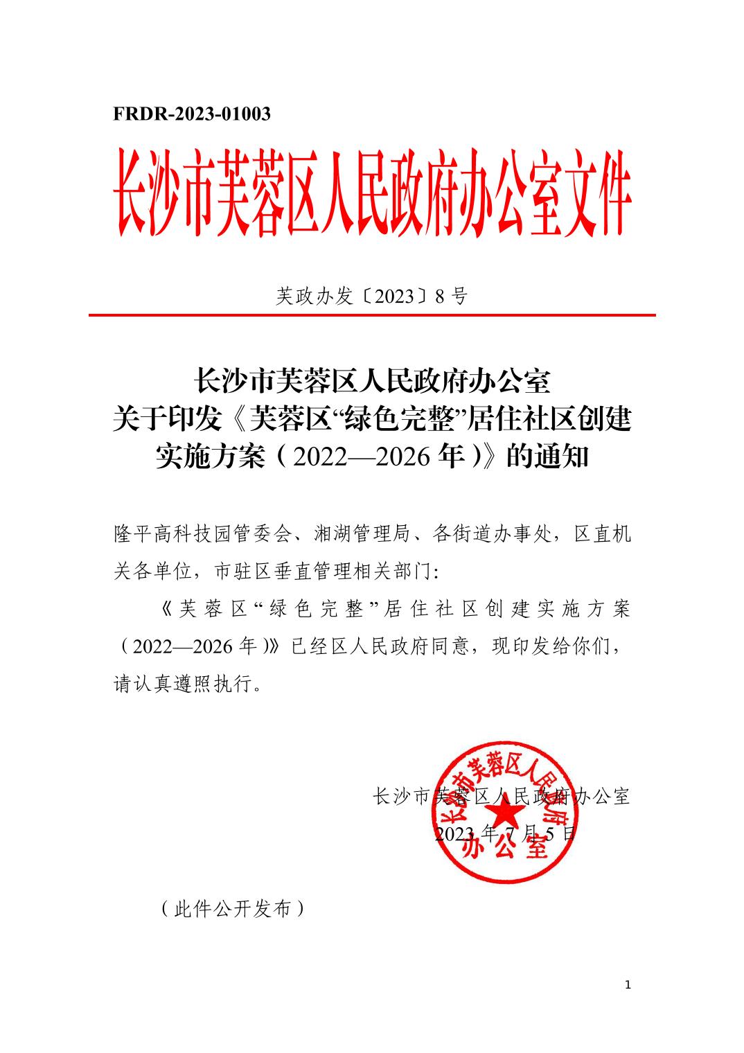 长沙市芙蓉区龙8国际办公室关于印发《芙蓉区“绿色完整”居住社区创建实施方案(2022-2026年)》的通知