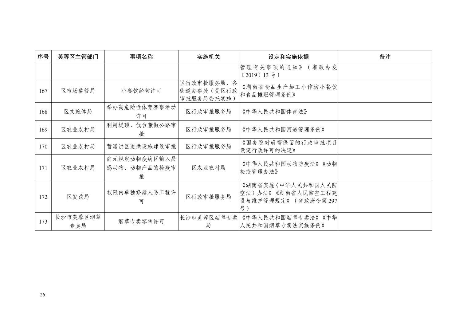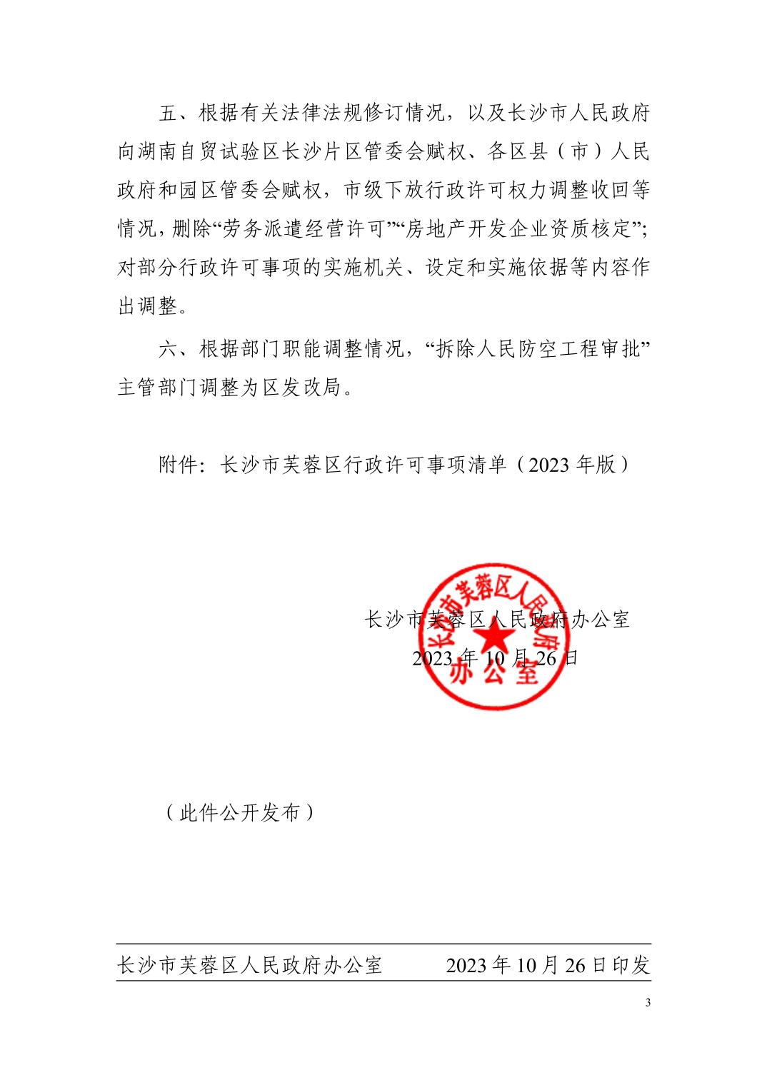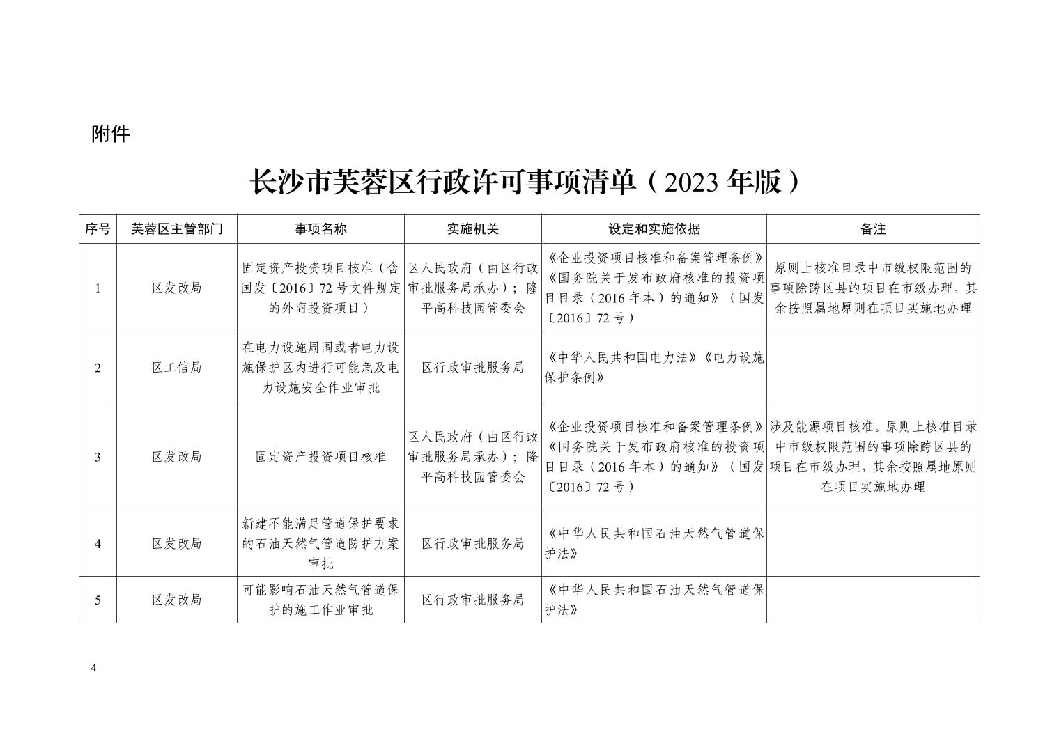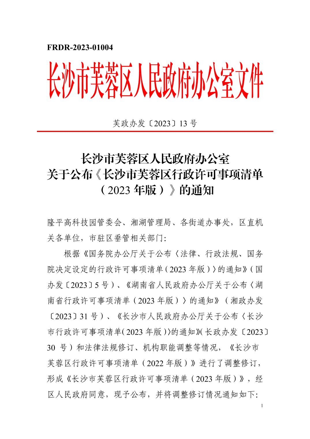 长沙市芙蓉区龙8国际办公室 关于公布《长沙市芙蓉区行政许可事项清单(2023年版)》的通知