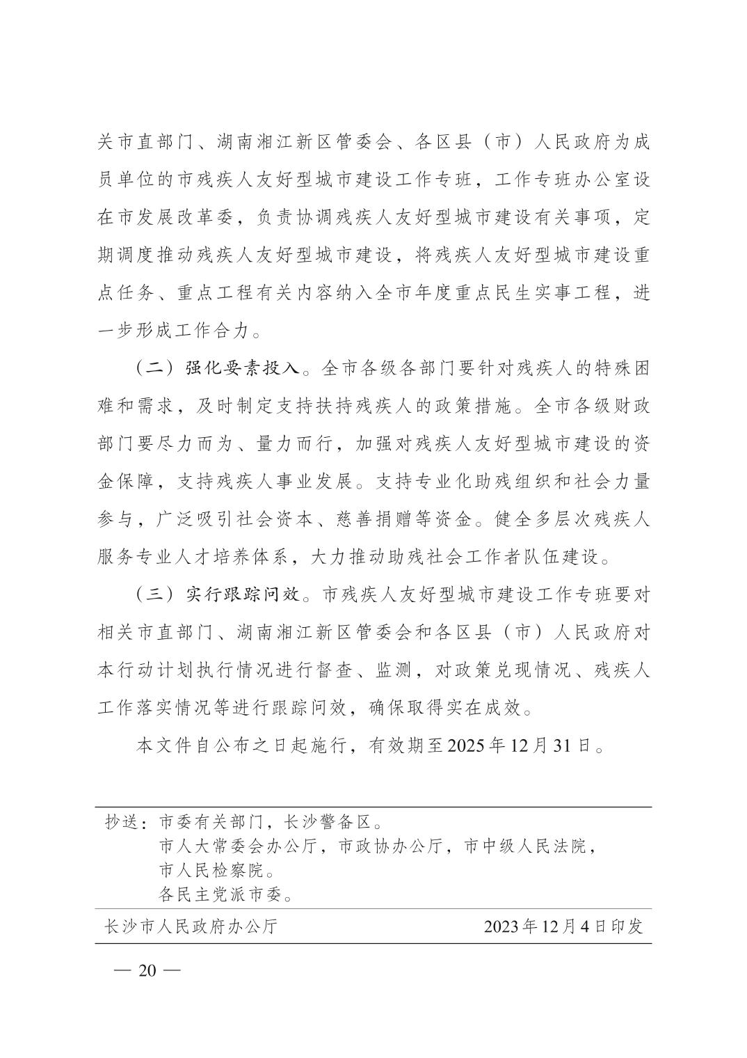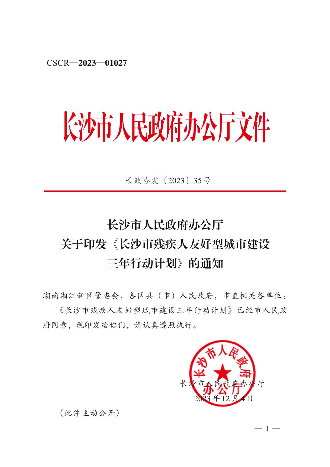 长沙市龙8国际办公厅 关于印发《长沙市残疾人友好型城市建设三年行动计划》的通知