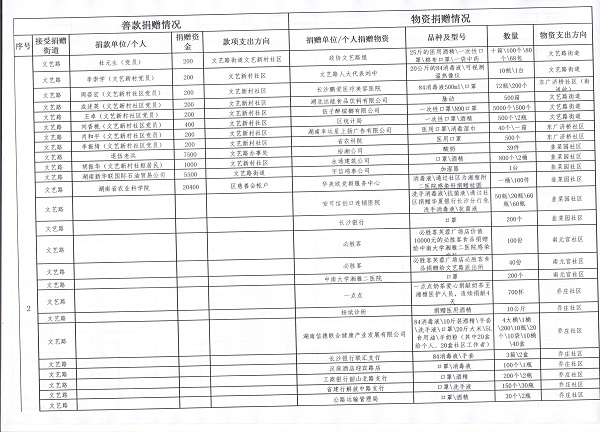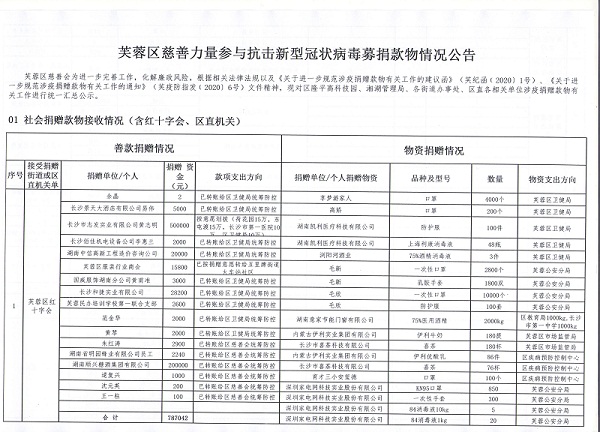 芙蓉区慈善力量参与抗击新型冠状病毒募捐款物情况公告