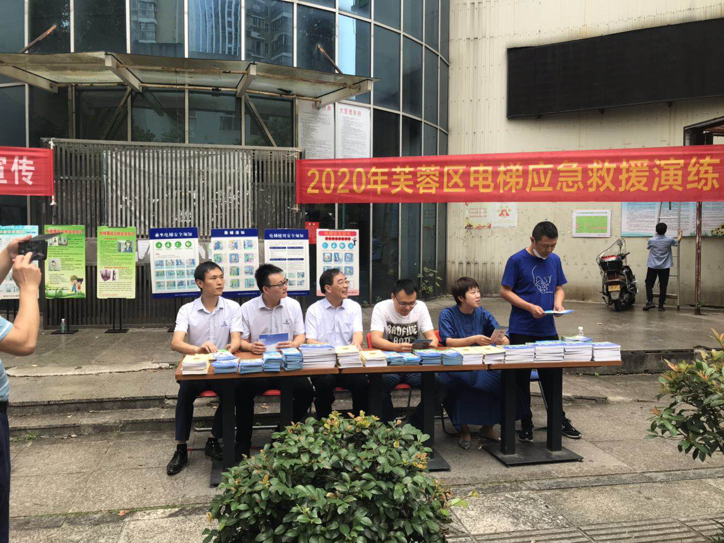 为进一步提高芙蓉区内高层物业小区居民乘梯安全意识,有效提升物业公司和电梯维保公司工作人员对突发电梯故障及电梯困人事件的应急处置能力。2020年6月19日,芙蓉区市场监督管理局以“安全生产月”为契机,联合湖南安卓特种设备科技有限公司在朝阳街道凯通国际城小区进行特种设备安全知识进小区的活动,并组织开展了电梯应急救援演练活动,现场100余人参加。