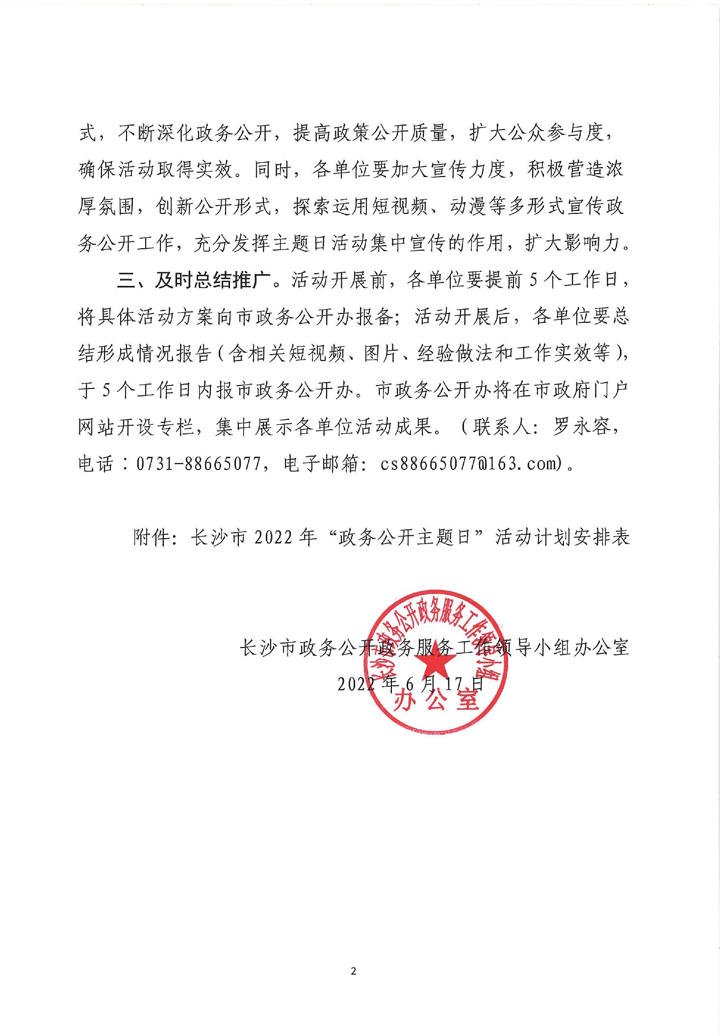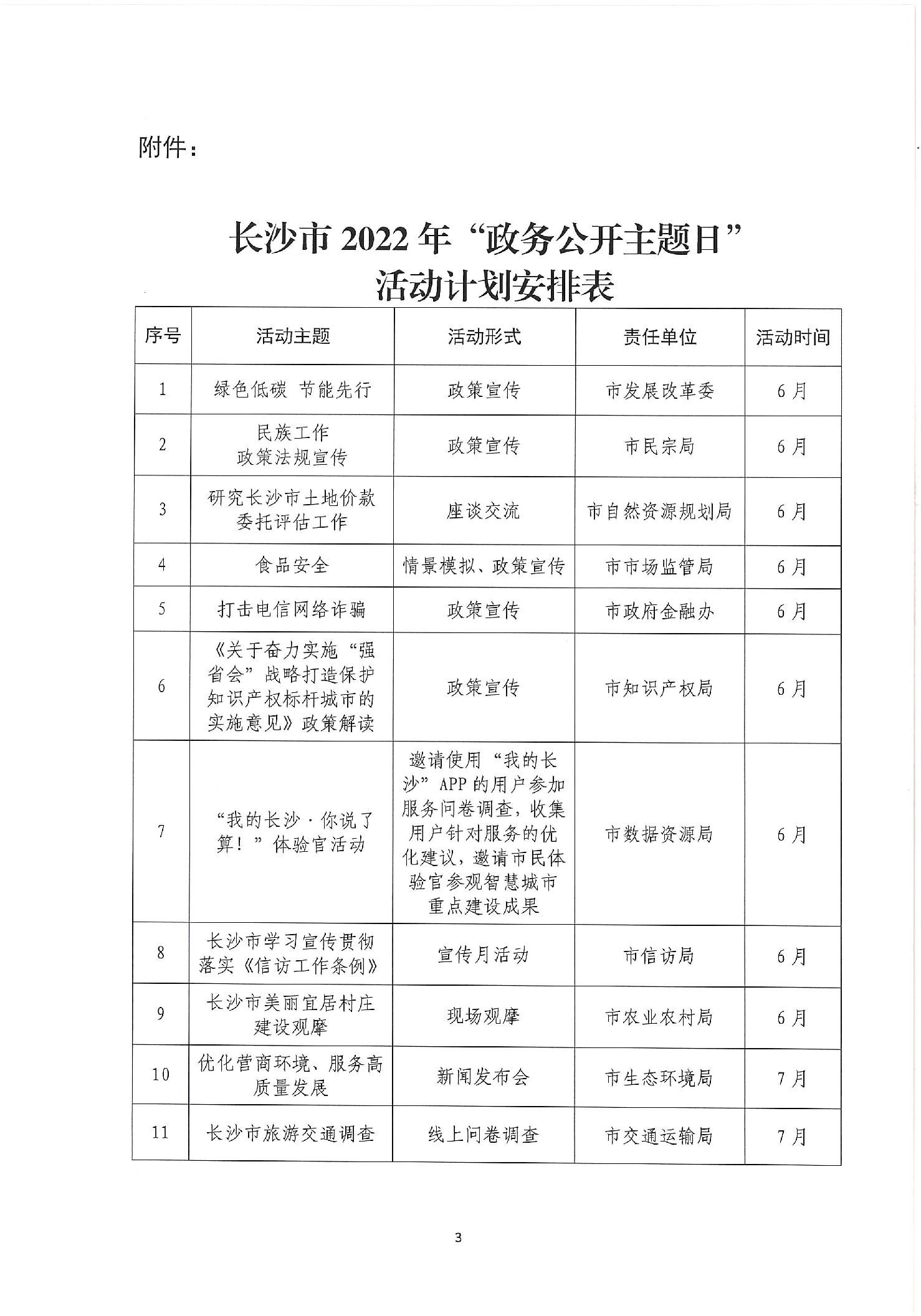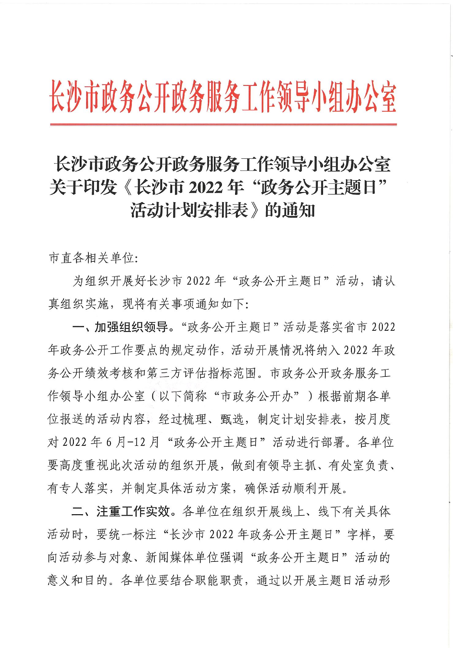 长沙市政务公开政务服务工作领导小组办公室关于印发《长沙市2022年“政务公开主题日”活动计划安排表》的通知
