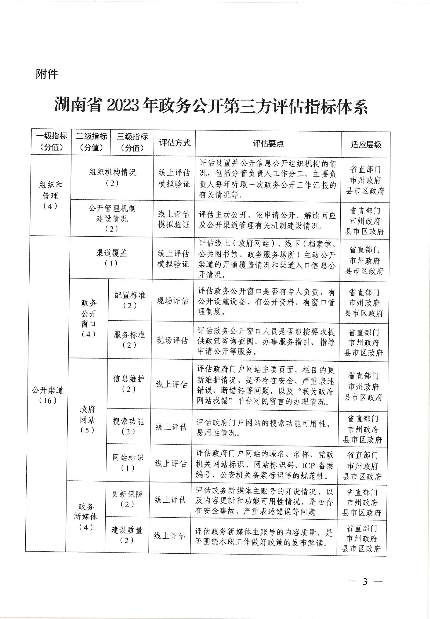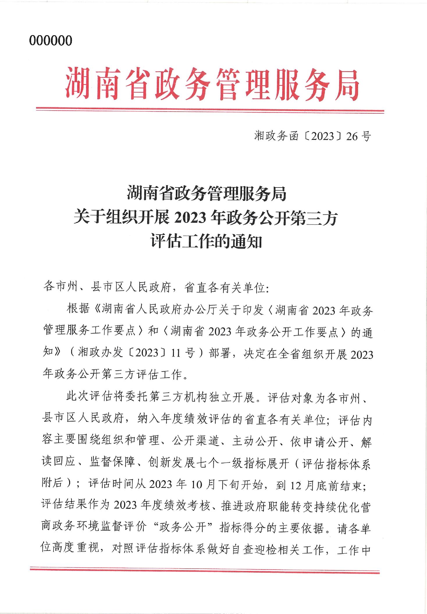 湖南省政务管理服务局关于组织开展2023年政务公开第三方评估工作的通知