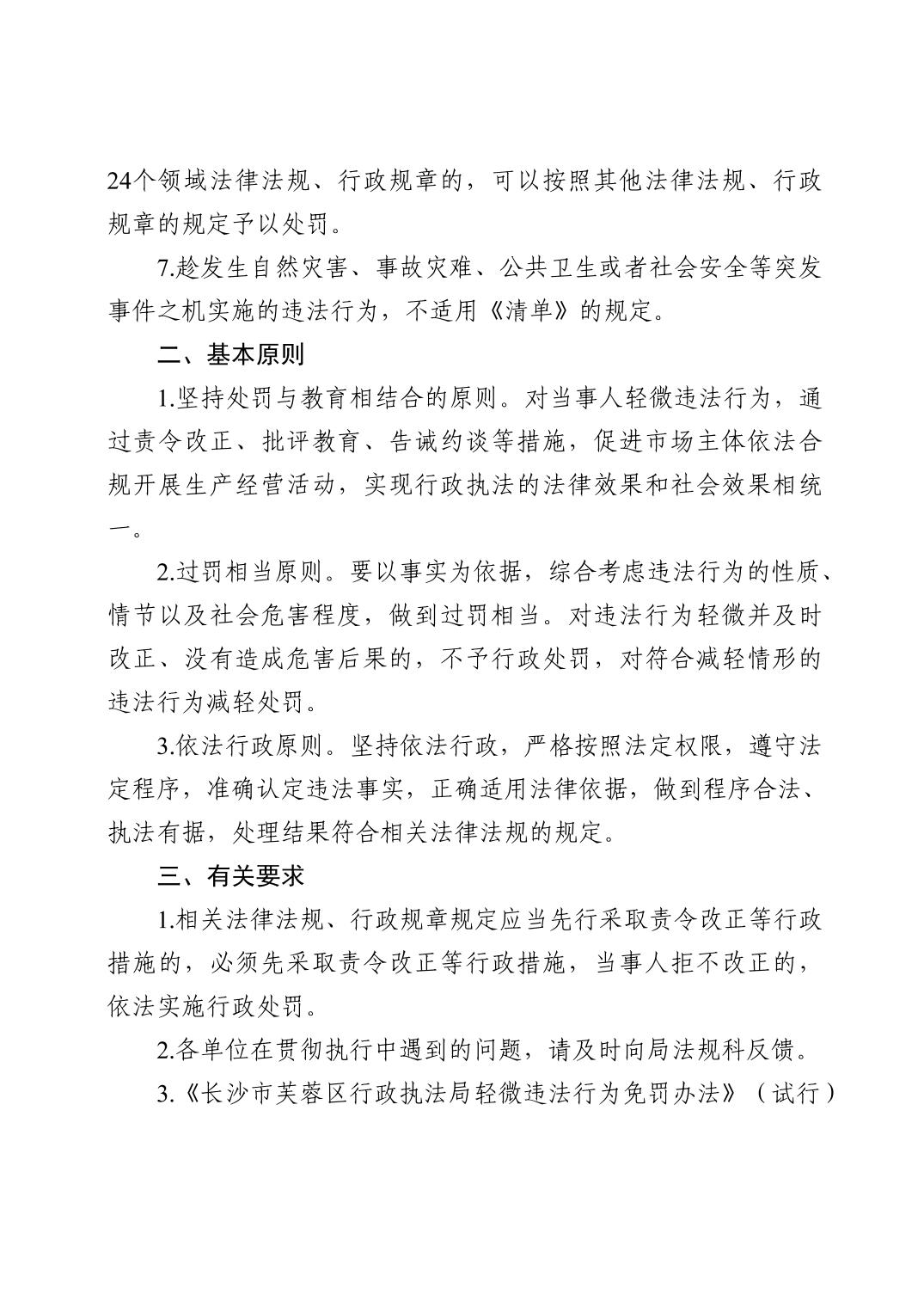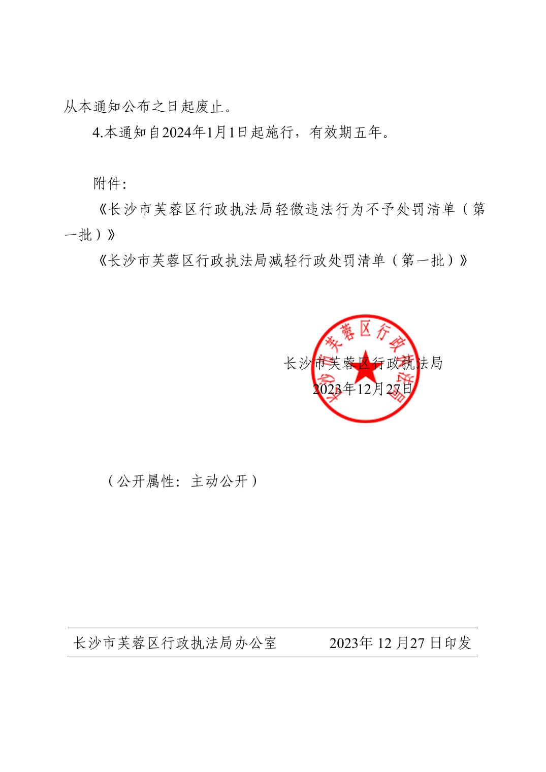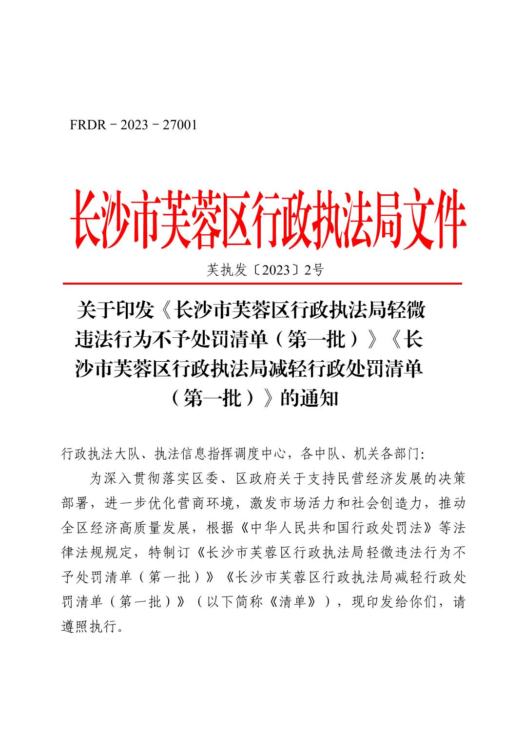 关于印发《长沙市芙蓉区行政执法局轻微违法行为不予处罚清单(第一批)》《长沙市芙蓉区行政执法局减轻行政处罚清单(第一批)》的通知