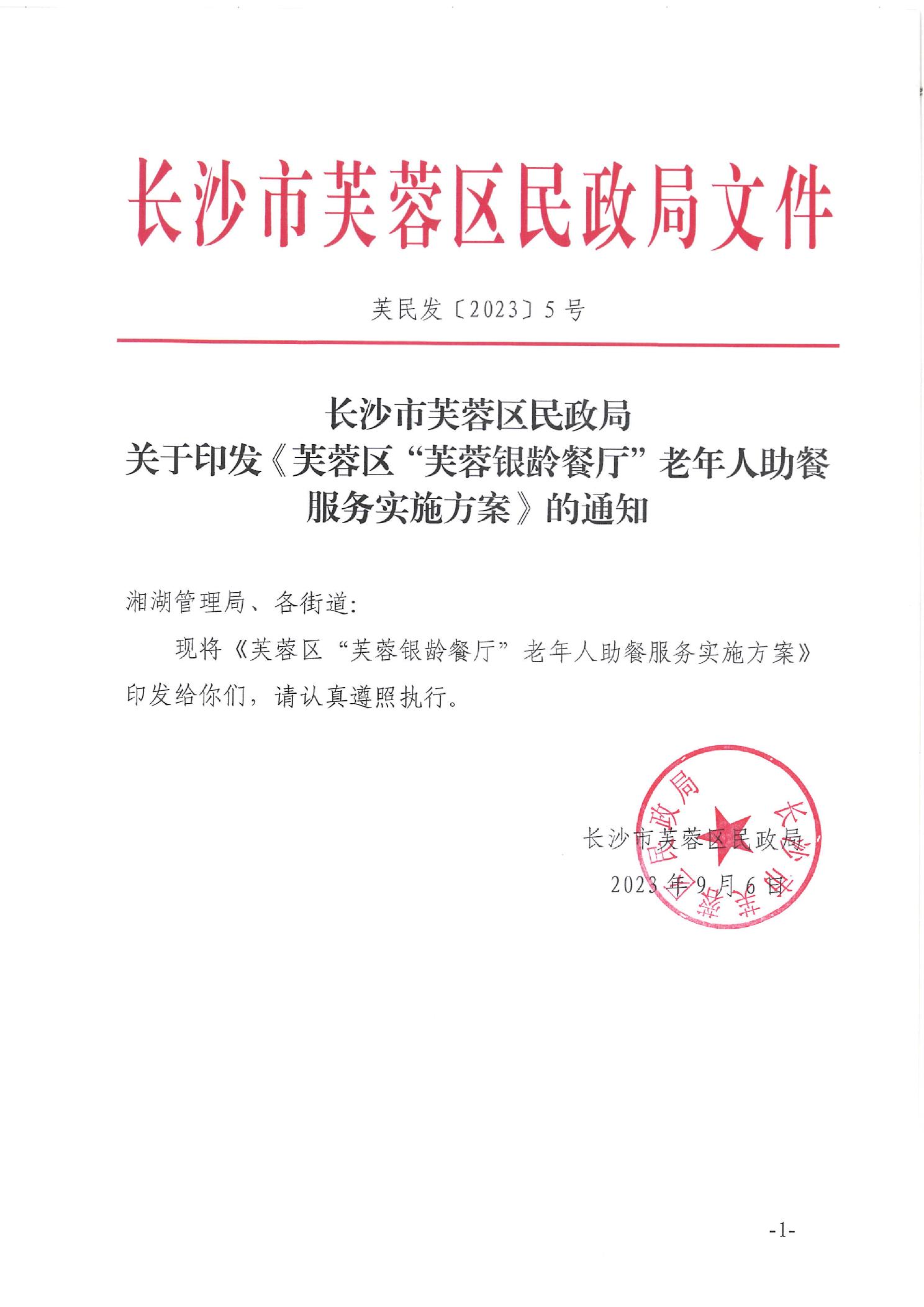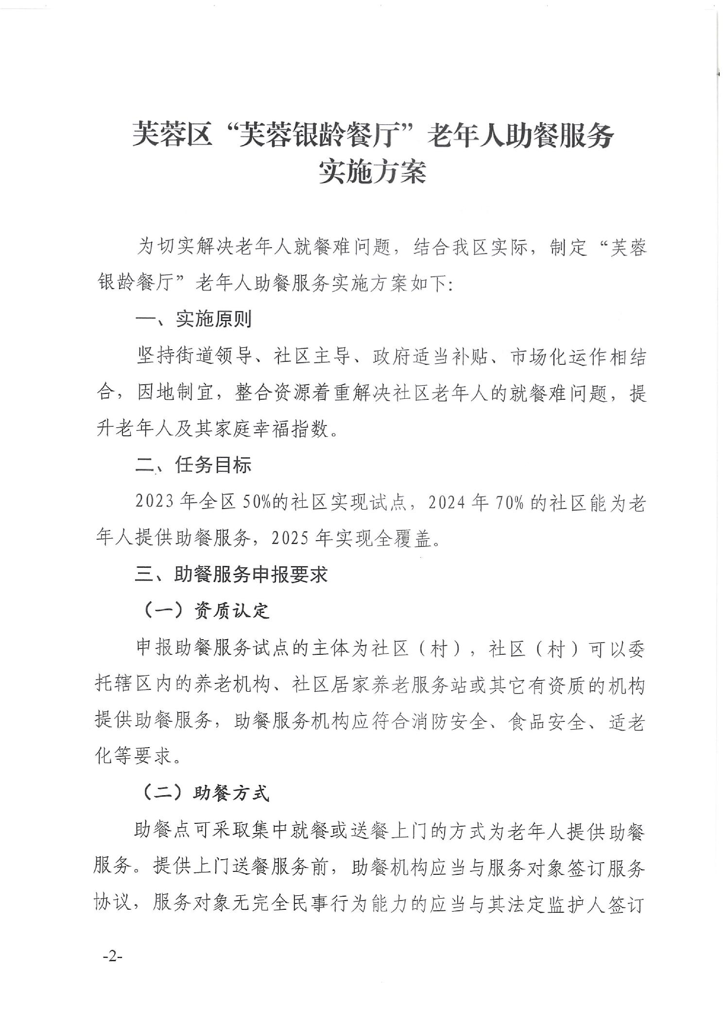 关于印发《“芙融银龄餐厅”老人助餐服务实施方案》的通知
