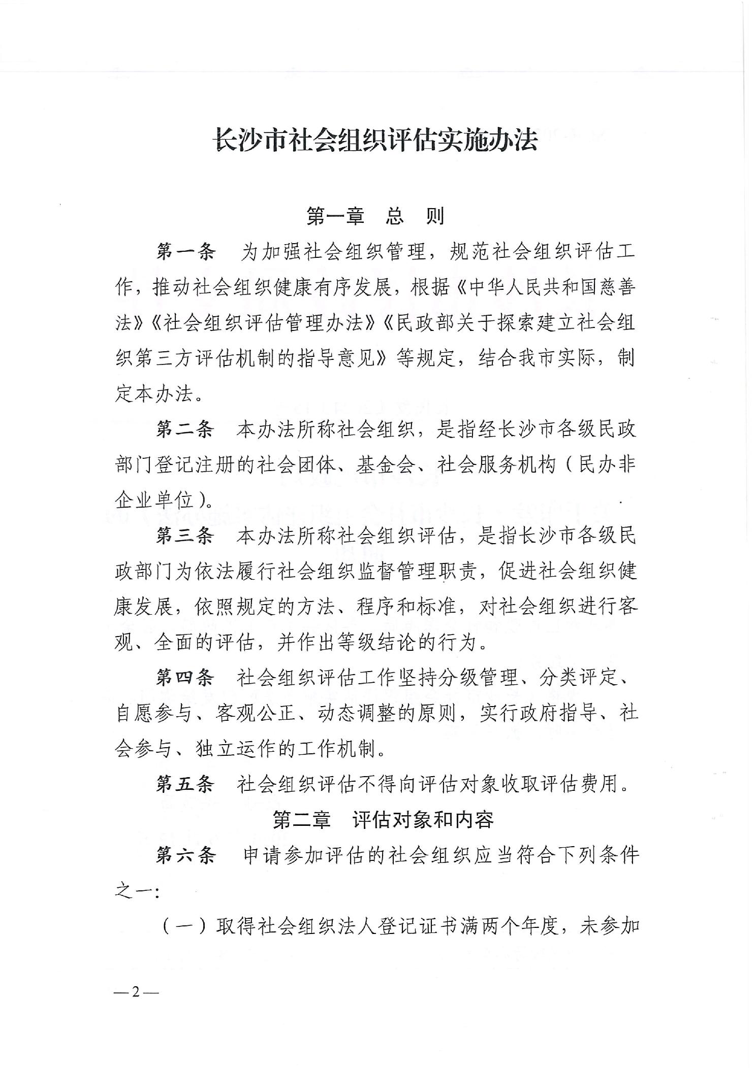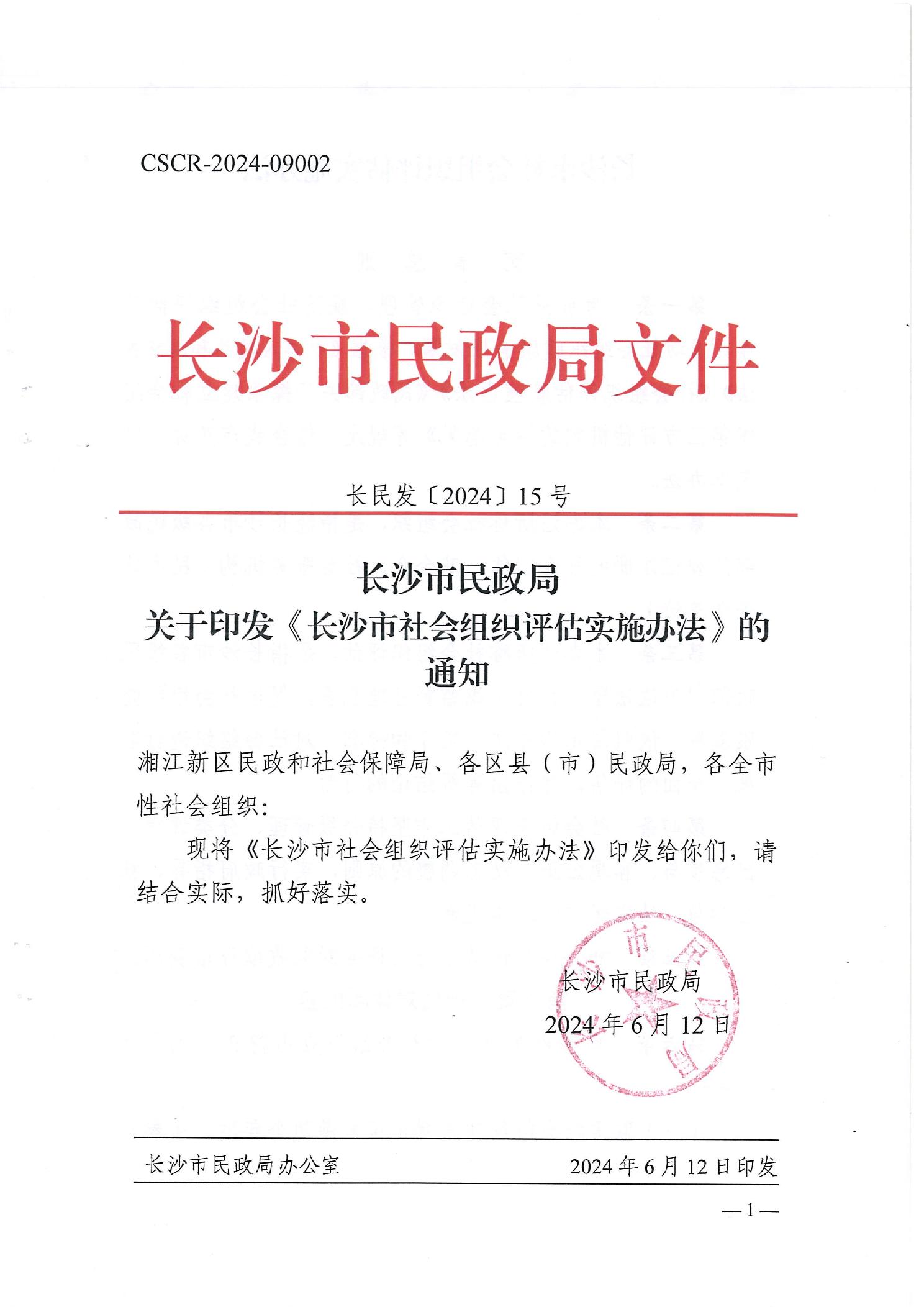 长沙市民政局关于印发《长沙市社会组织评估实施办法》的通知