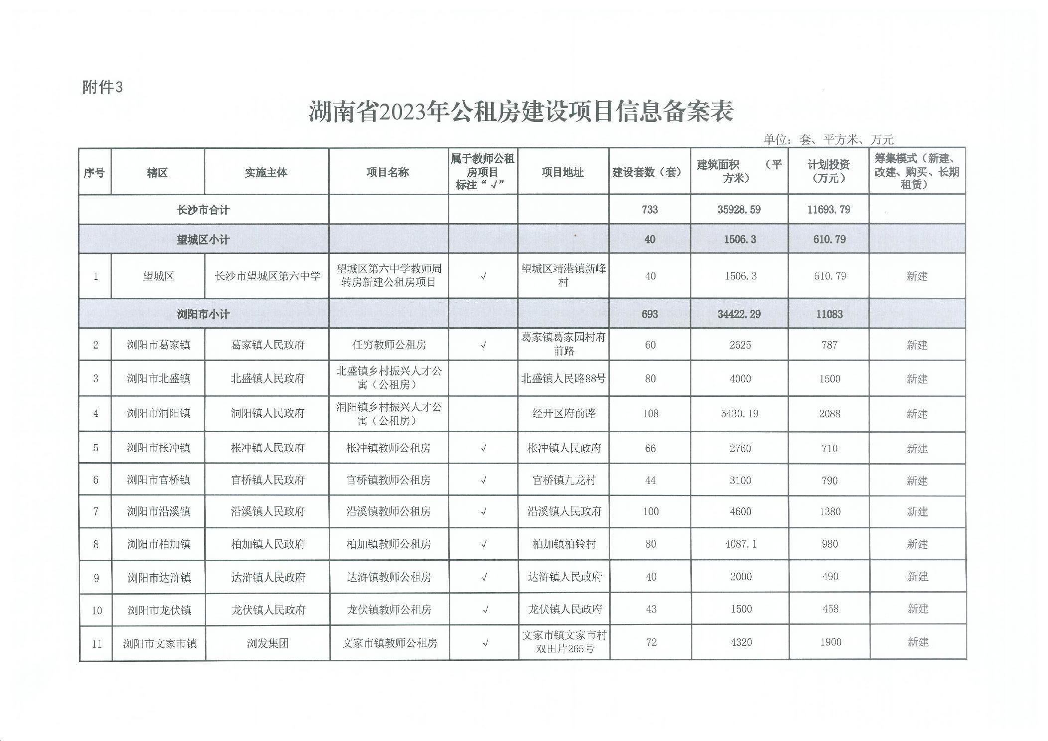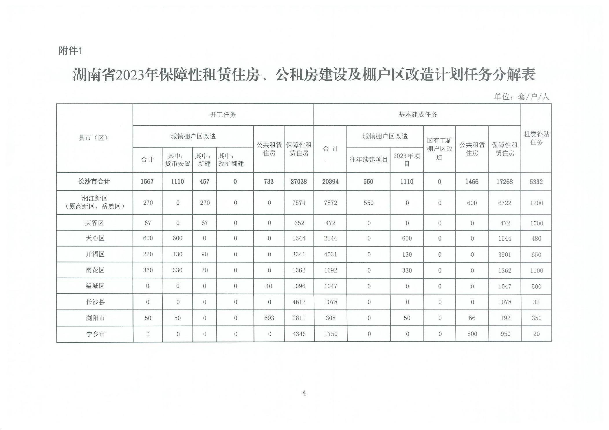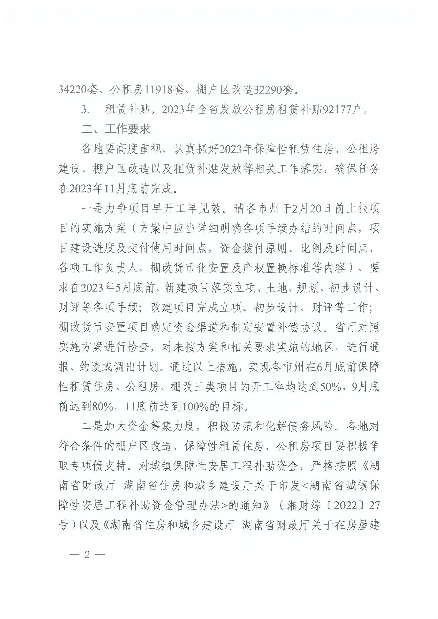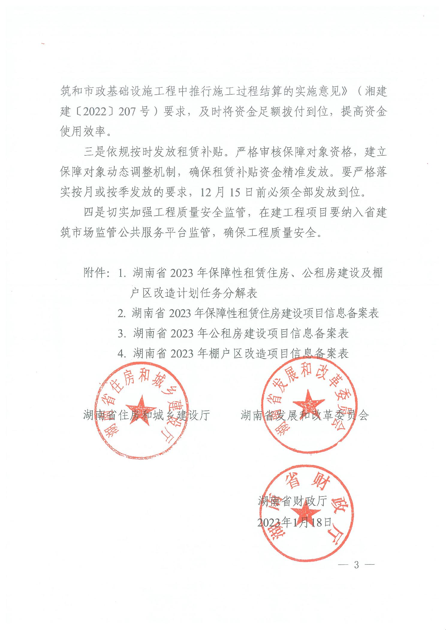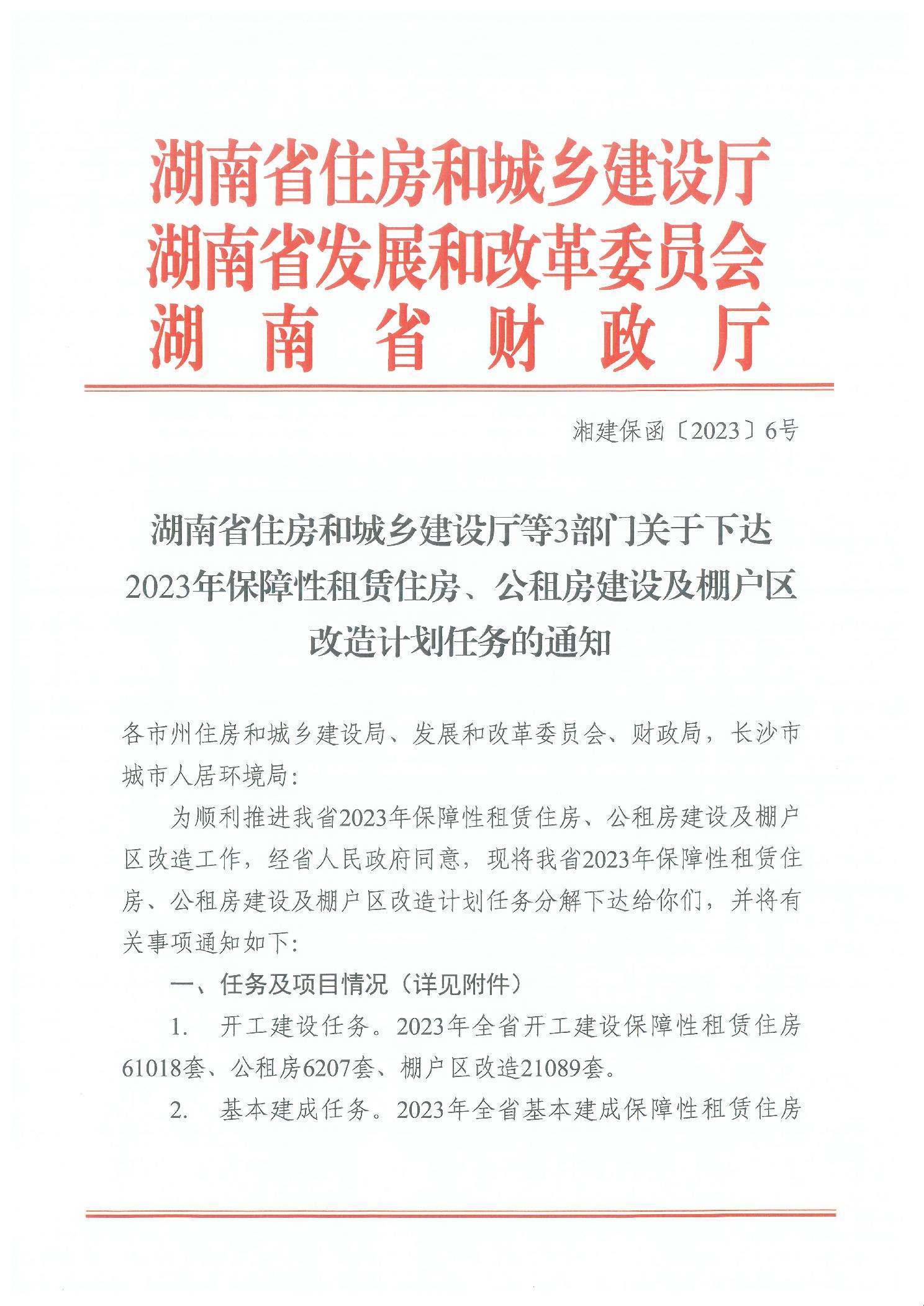 湖南省住房和城乡建设厅等3部门关于下达2023年保障性租赁住房、公租房建设及棚户区改造计划任务的通知