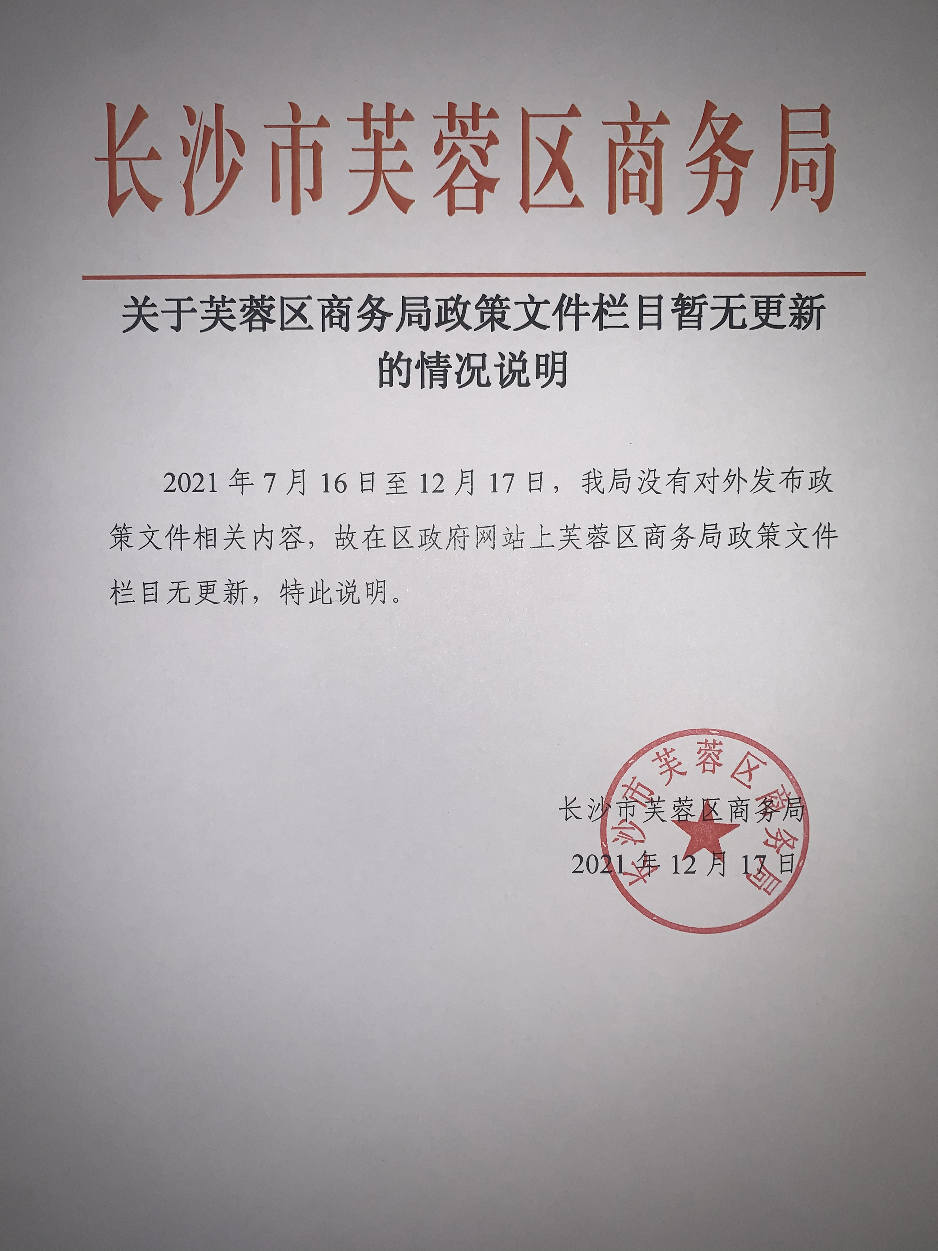 关于芙蓉区商务局政策文件栏目暂无更新的情况说明