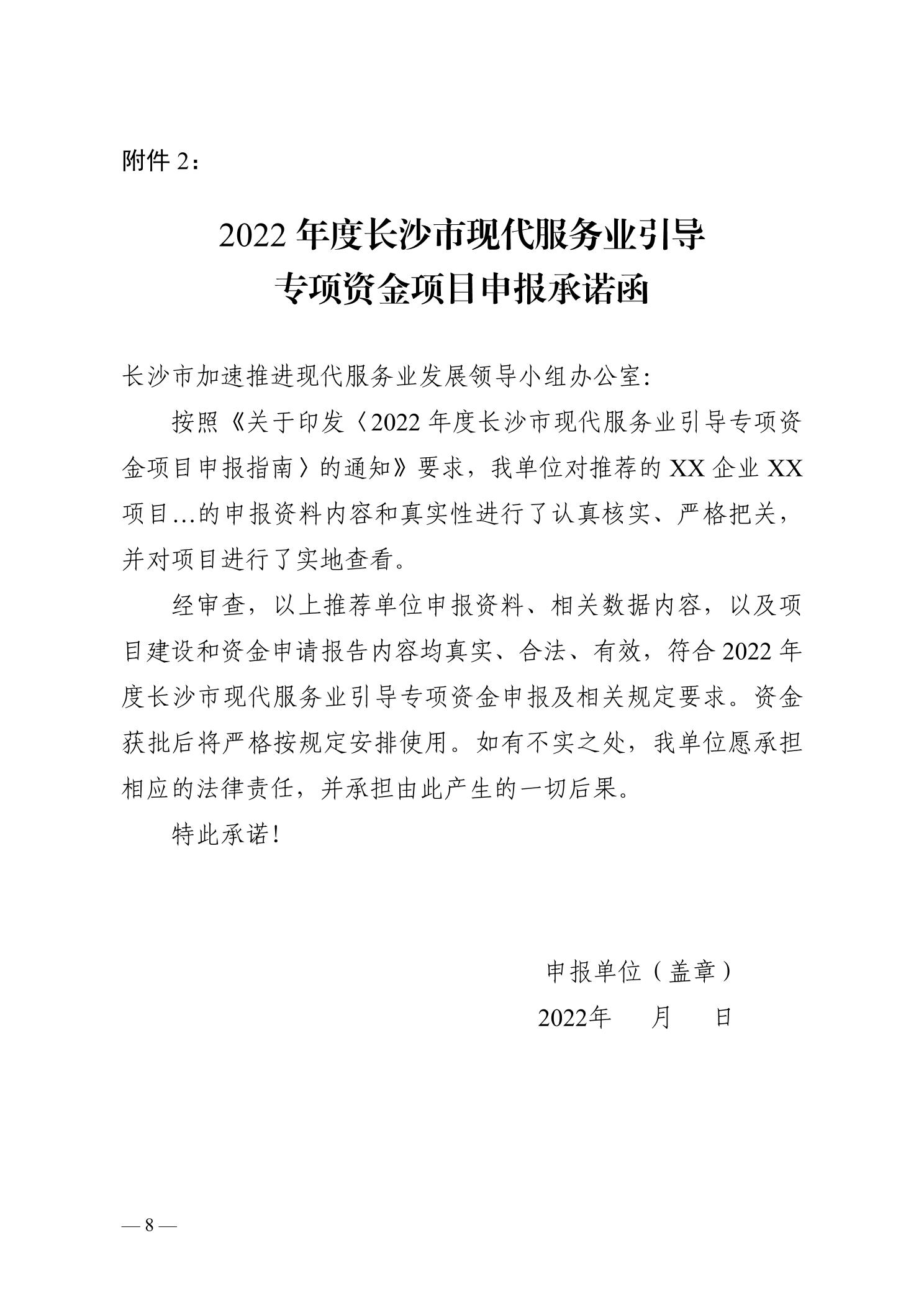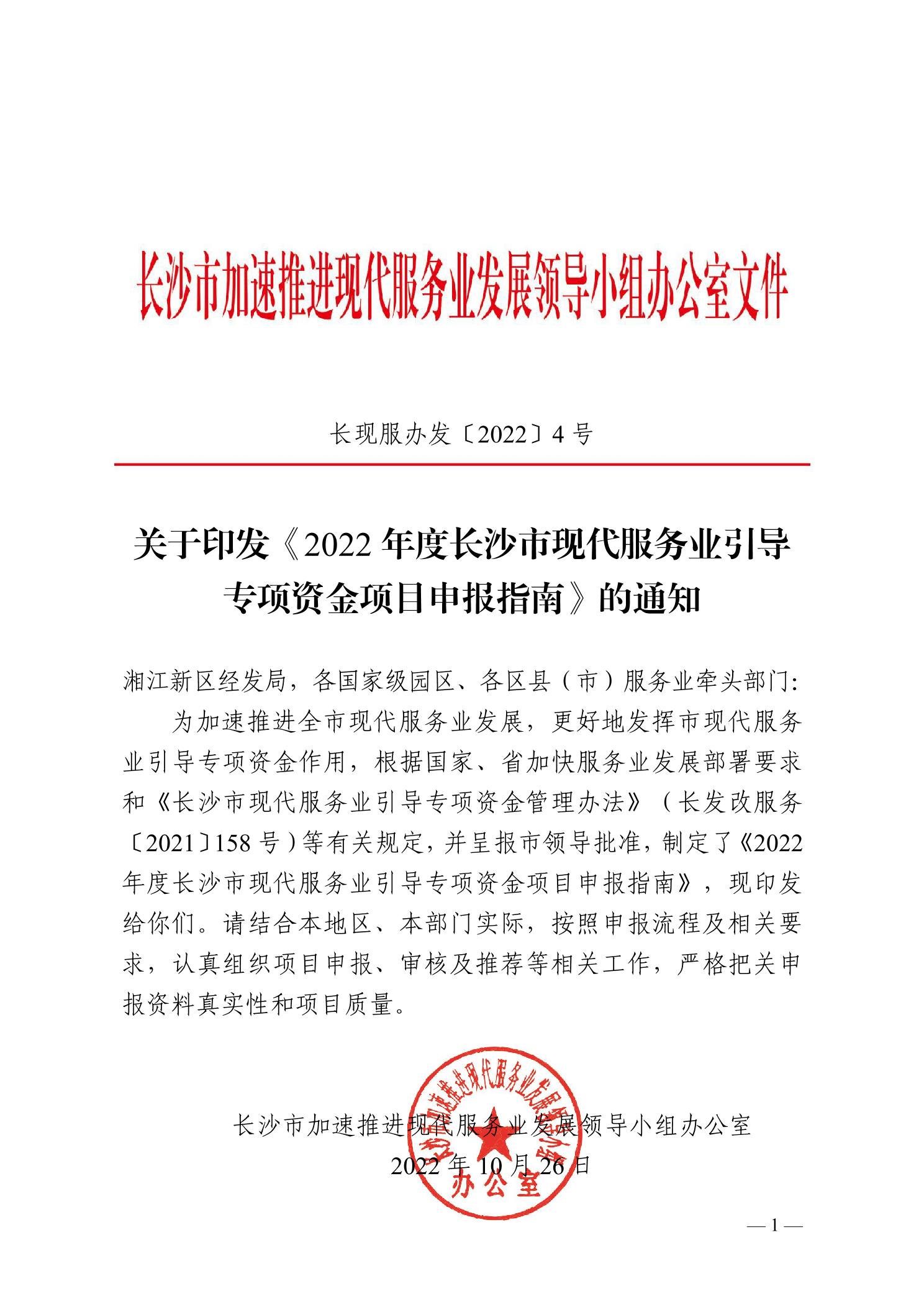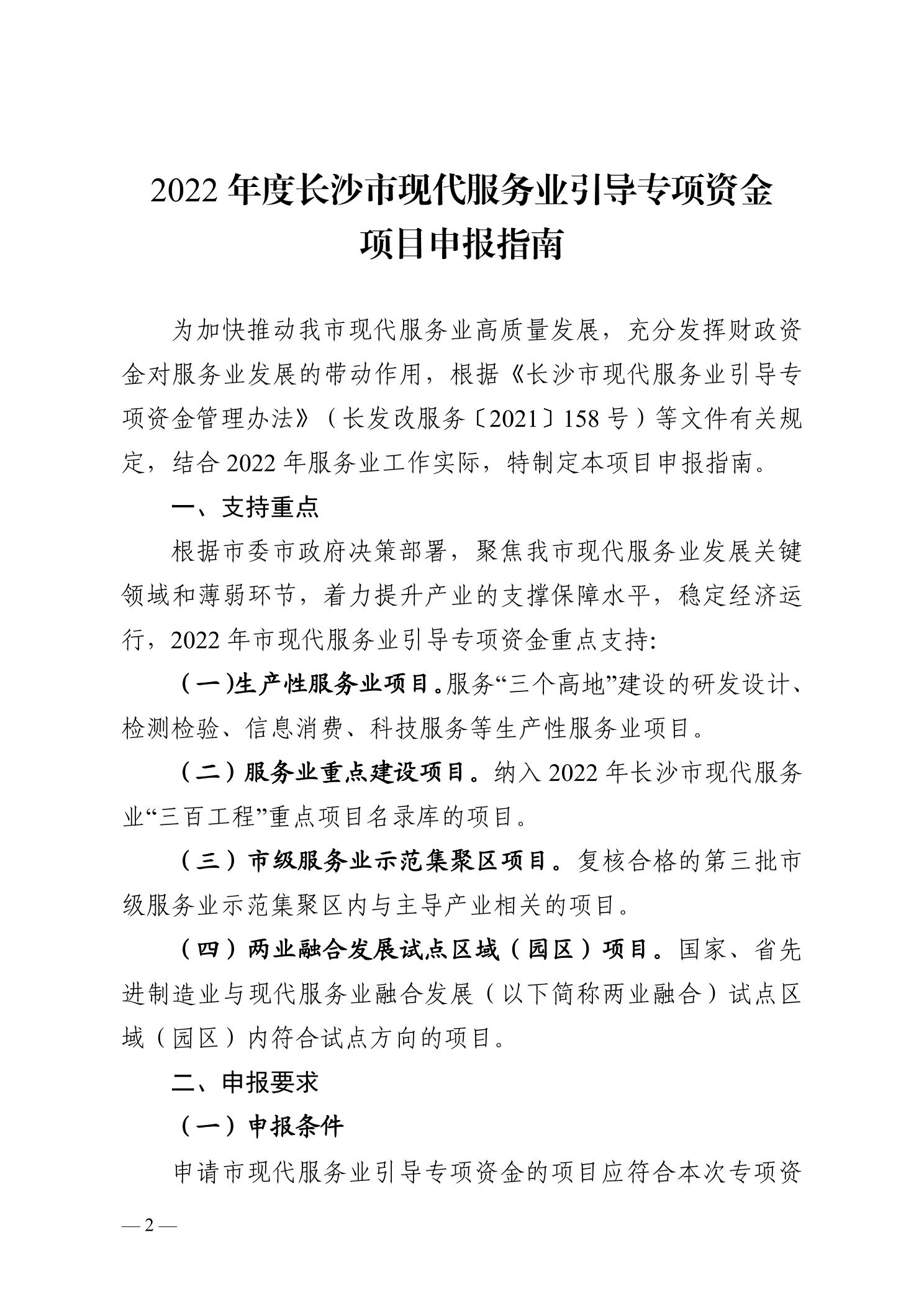关于印发《2022年度长沙市现代服务业引导专项资金项目申报指南》的通知