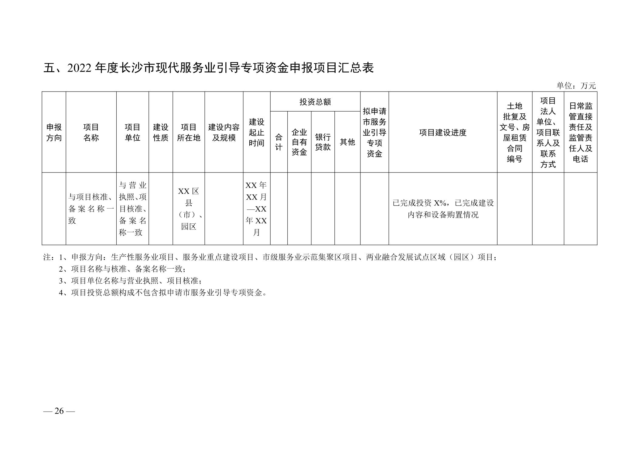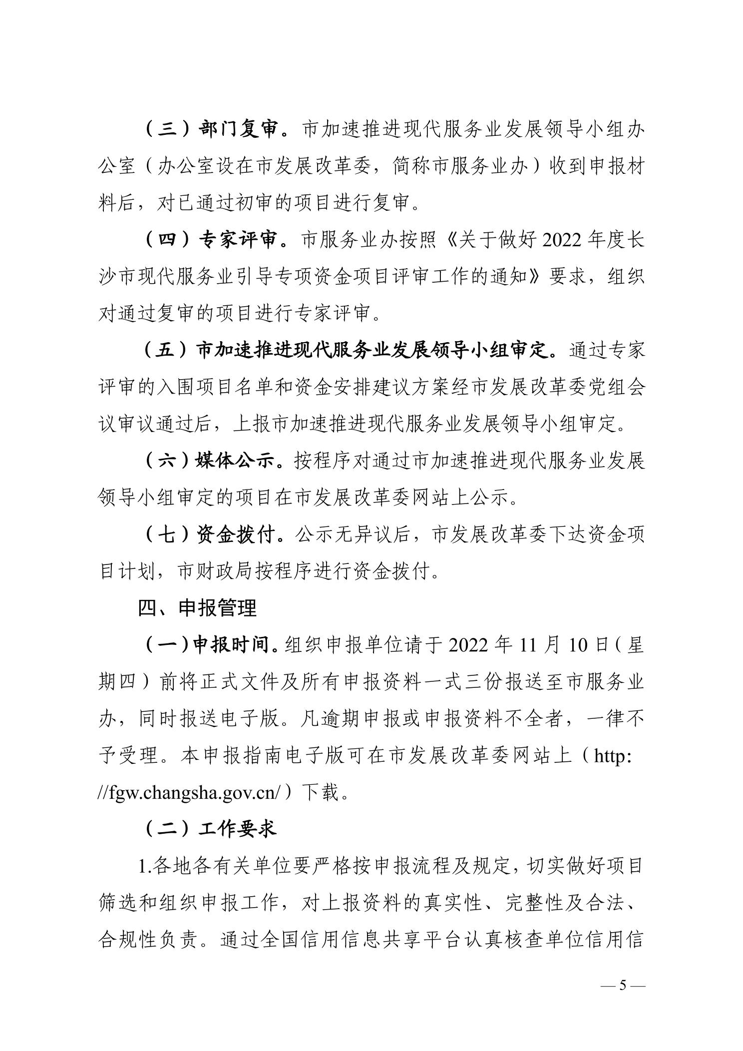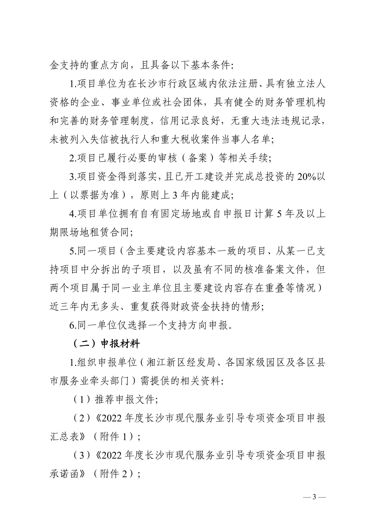 关于印发《2022年度长沙市现代服务业引导专项资金项目申报指南》的通知