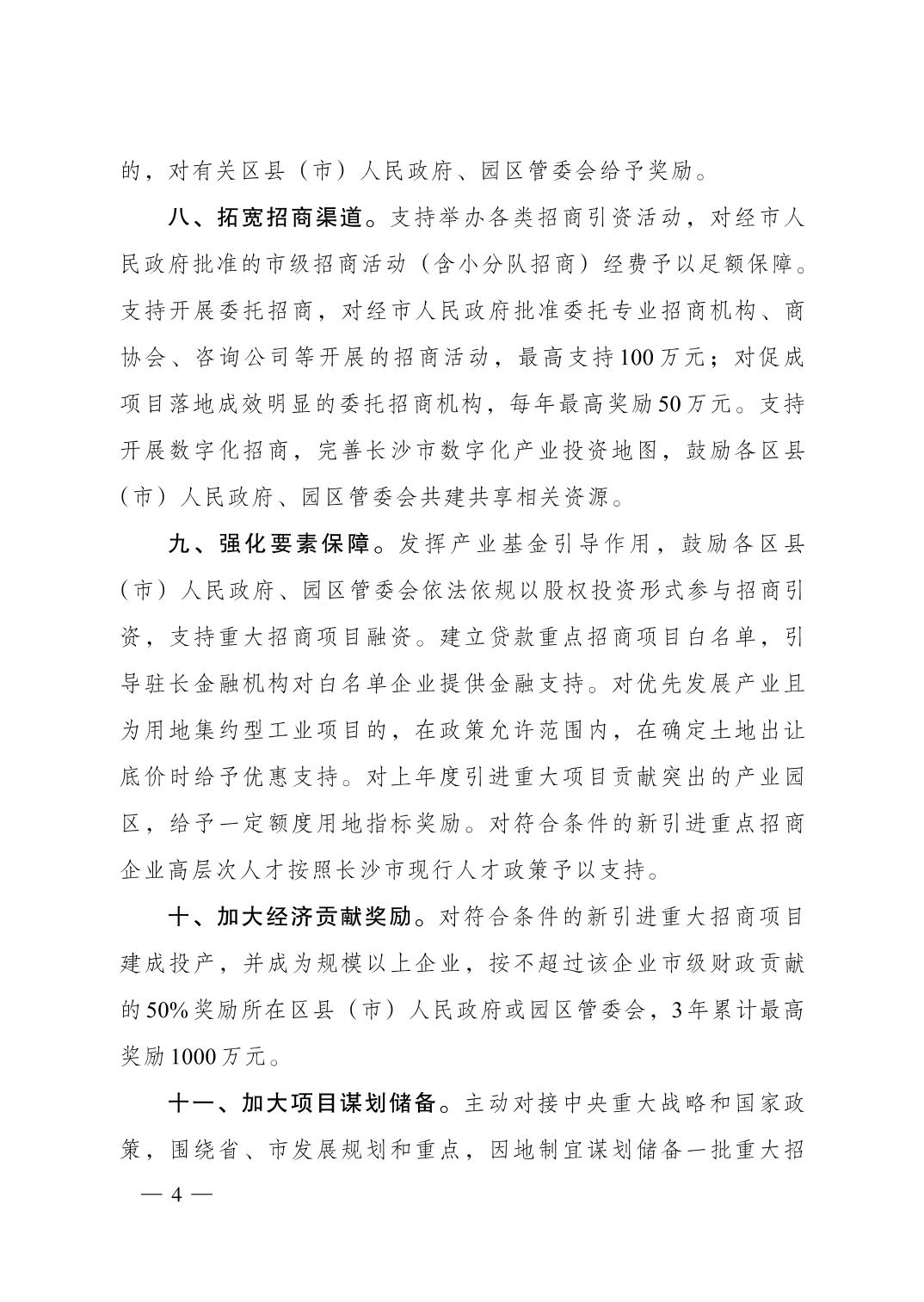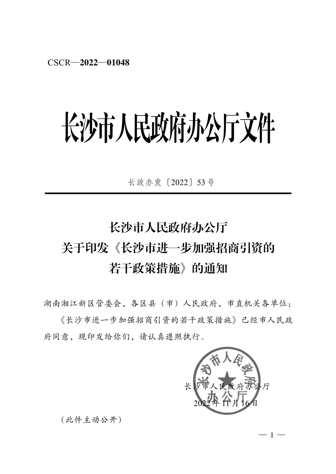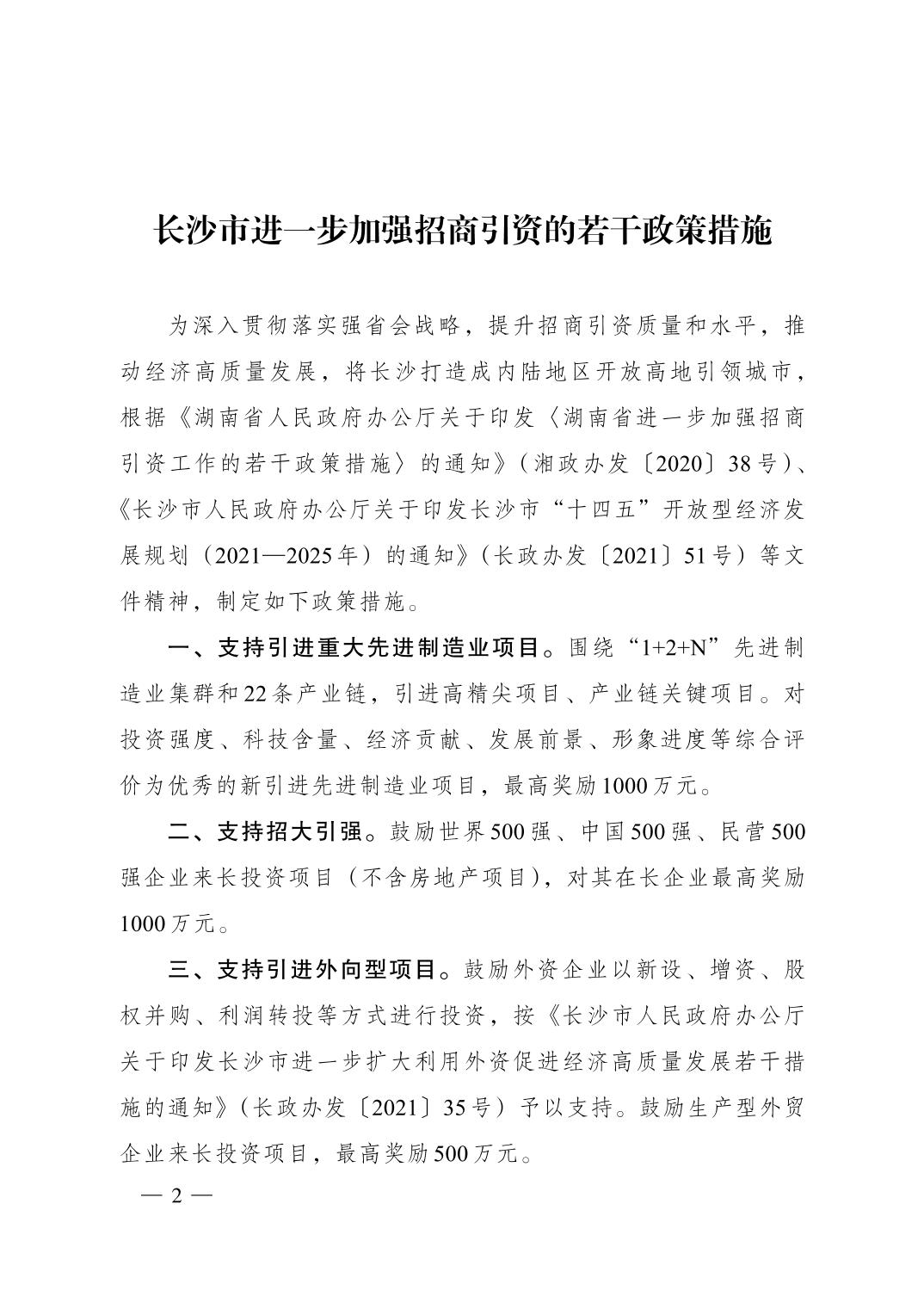长沙市龙8国际办公厅 关于印发《长沙市进一步加强招商引资的若干政策措施》的通知