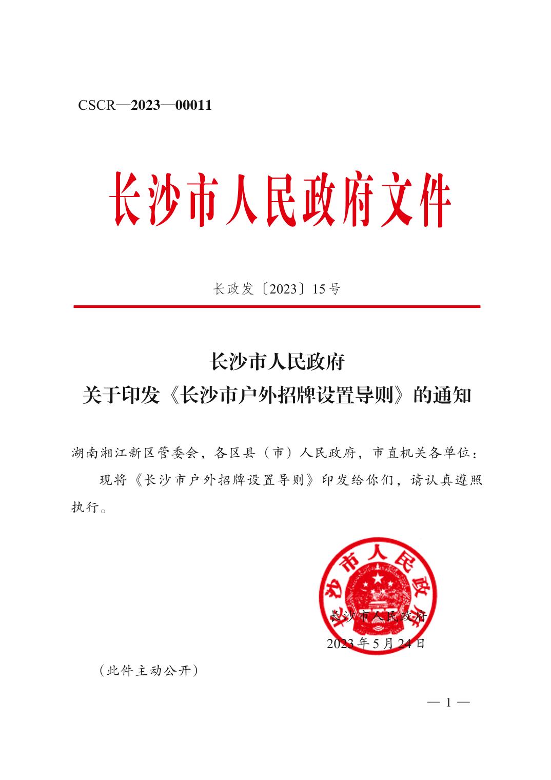 转发长沙市龙8国际关于印发《长沙市户外招牌设置导则》的通知