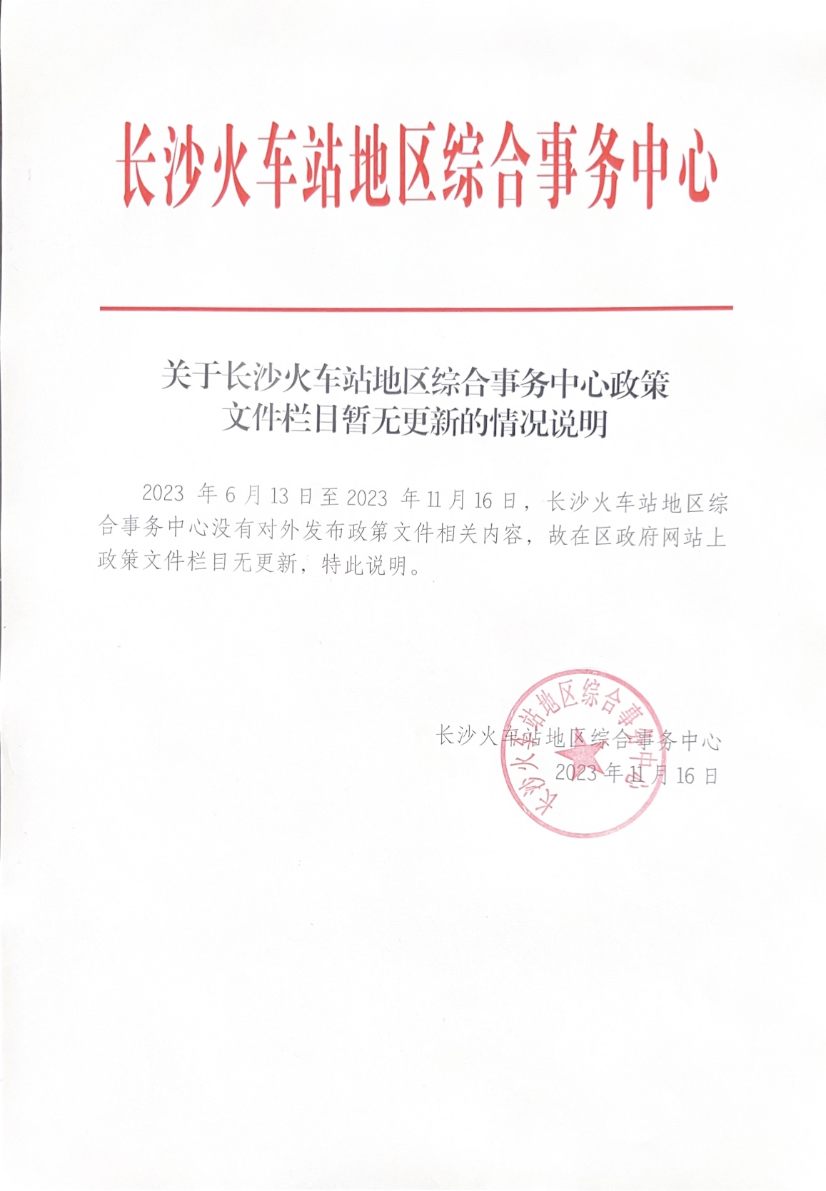 关于长沙火车站地区综合事务中心政策文件栏目暂无更新的情况说明