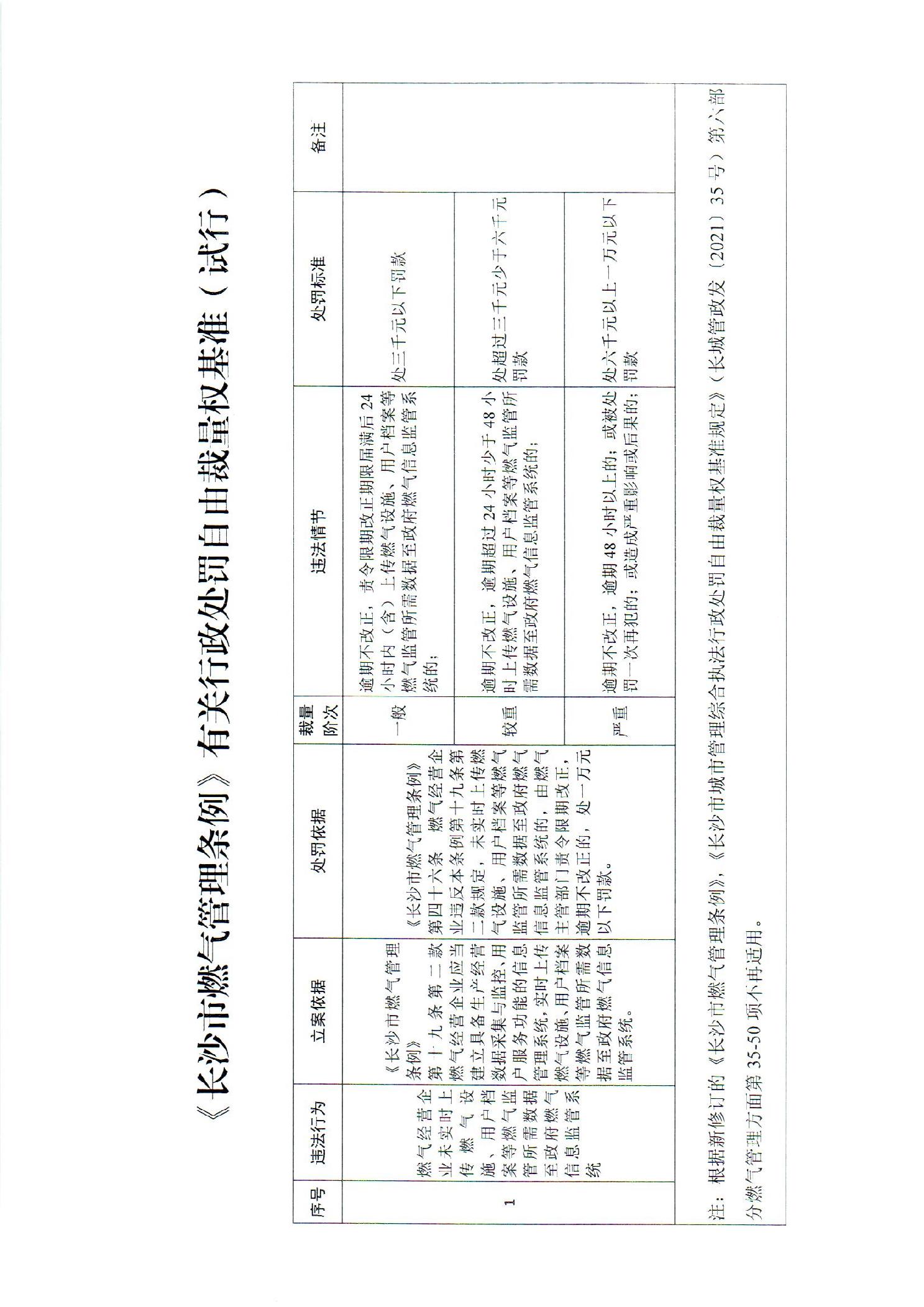 转发长沙市城市管理局 关于印发《〈长沙市燃气管理条例〉〈长沙市 餐饮业油烟污染防治若干规定〉有关行政处罚自由裁量权基准(试行)》的通知