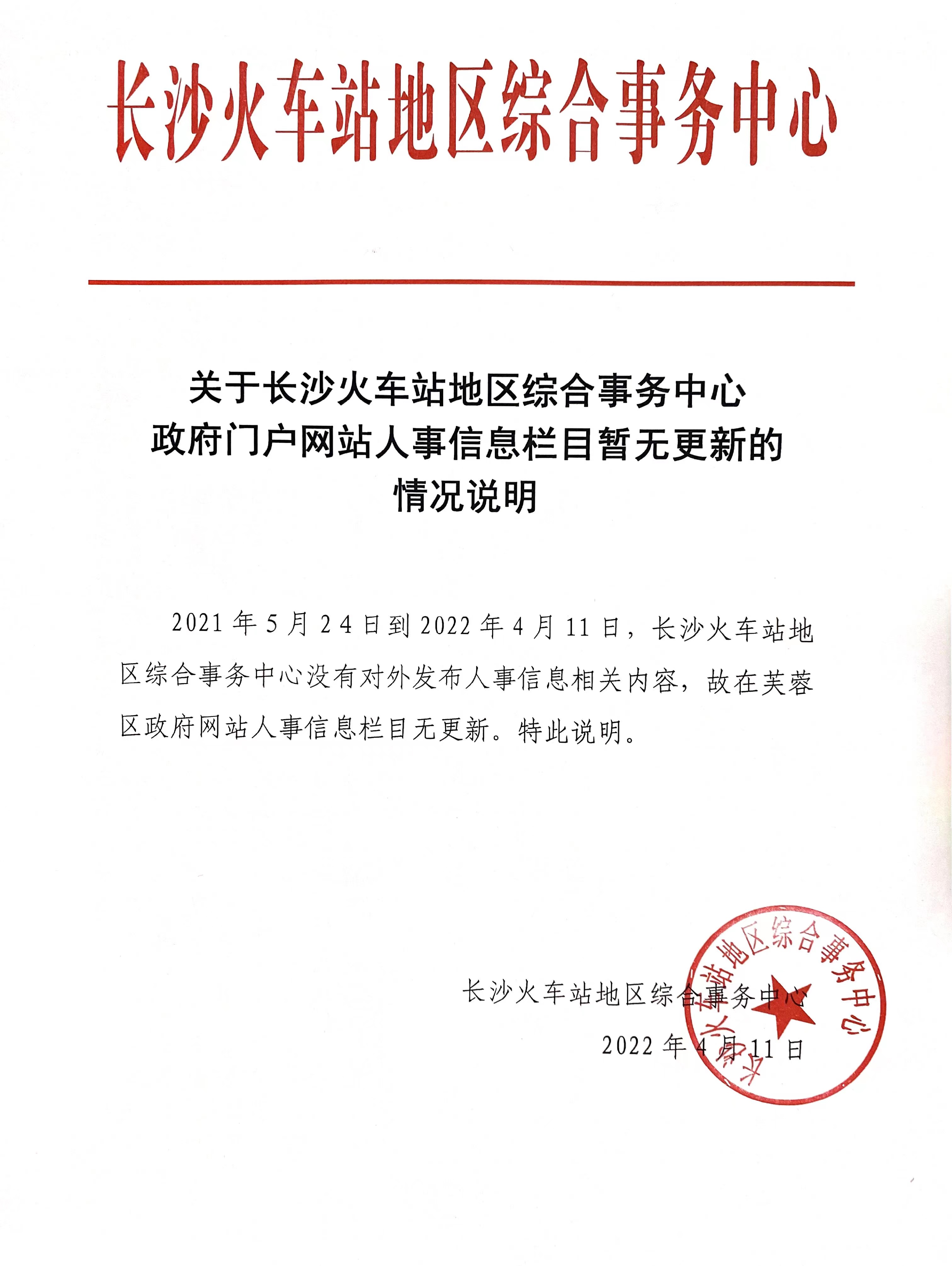 长沙火车站地区综合事务中心人事信息暂无更新的情况说明