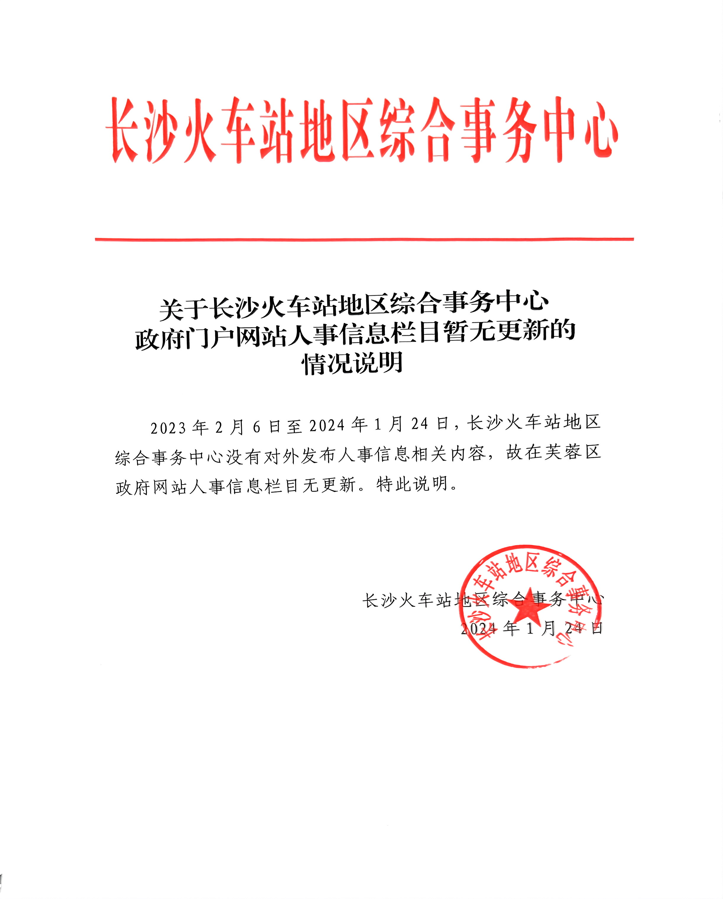 关于长沙火车站地区综合事务中心政府门户网站人事信息栏目暂无更新的情况说明