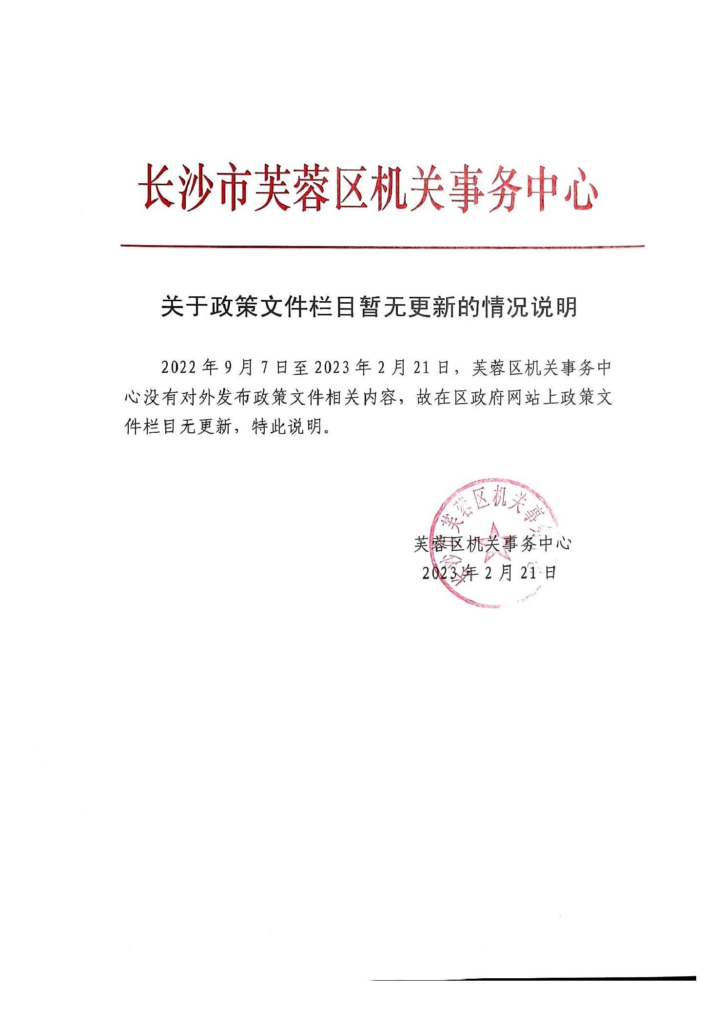 关于政策文件栏目暂无更新的情况说明