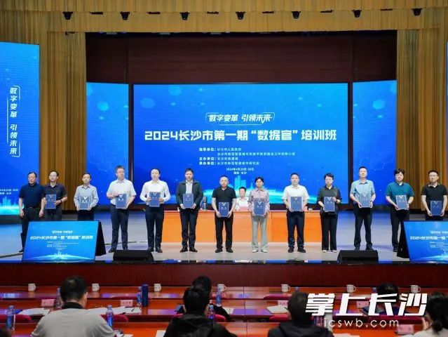 开班仪式由长沙市数据局党组书记、局长、市首席数据执行官周娟平主持。长沙市政府办公室二级巡视员蒋集政到会致辞,长沙市委组织部副部长、市委人才工作局局长易敏华出席,并为部门首席“数据官”代表颁发聘书。