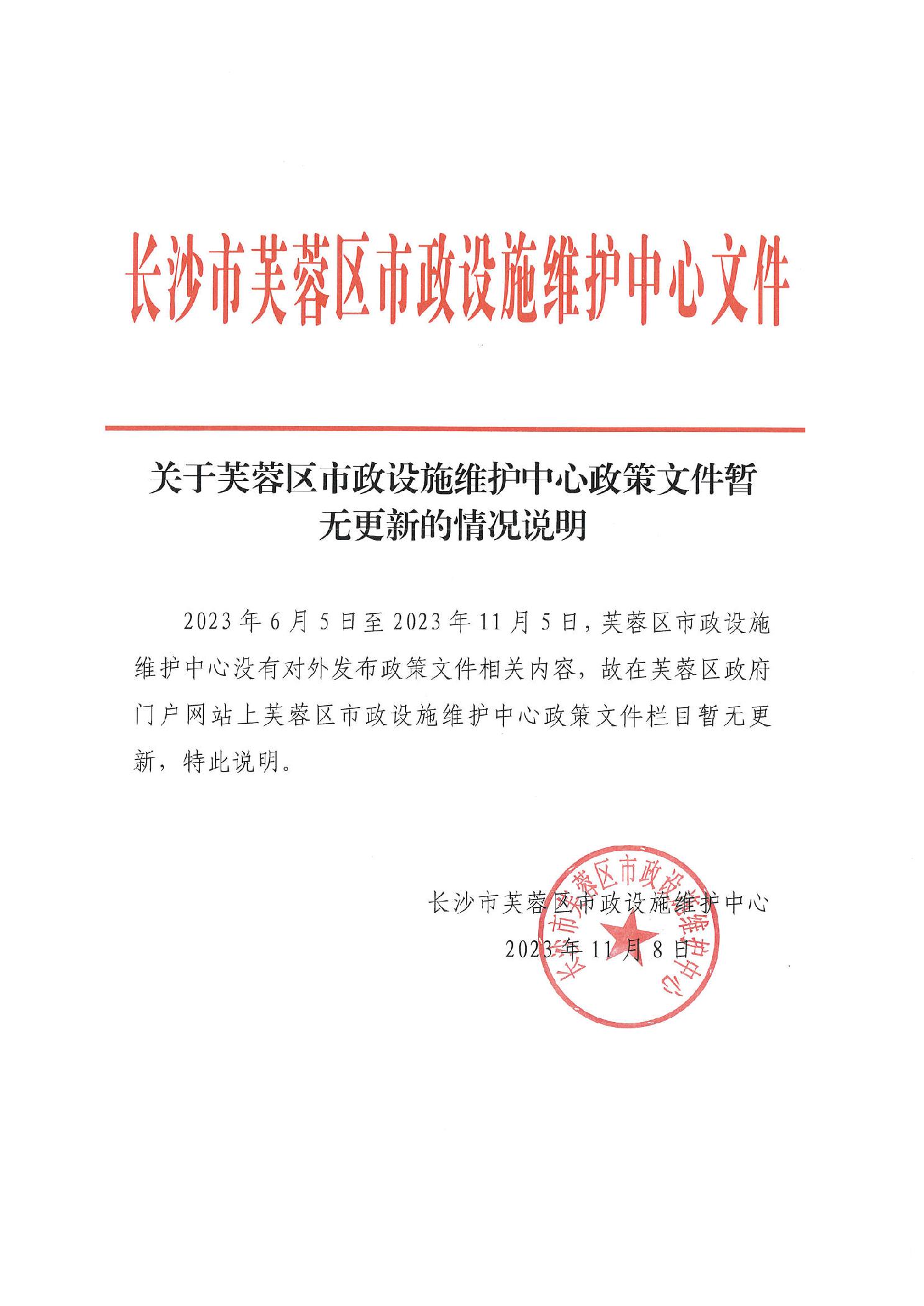 关于芙蓉区市政设施维护中心政策文件暂无更新的情况说明