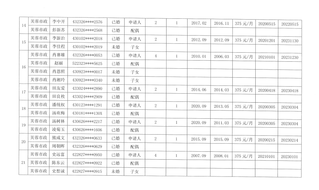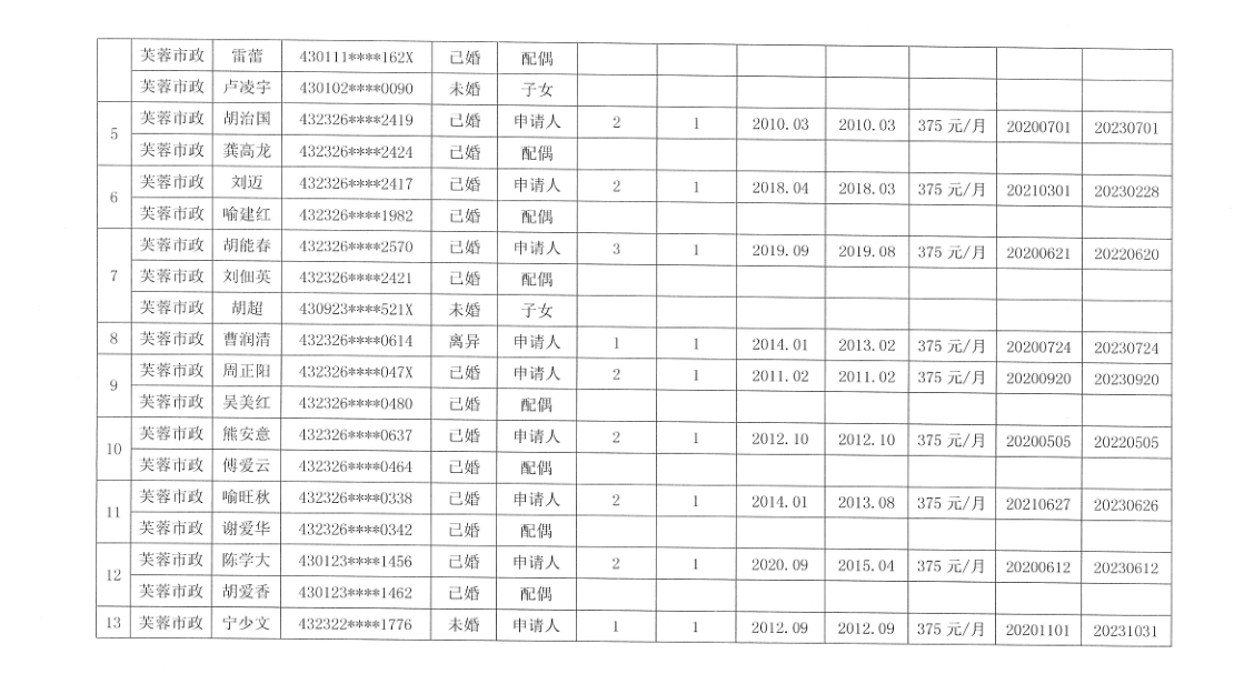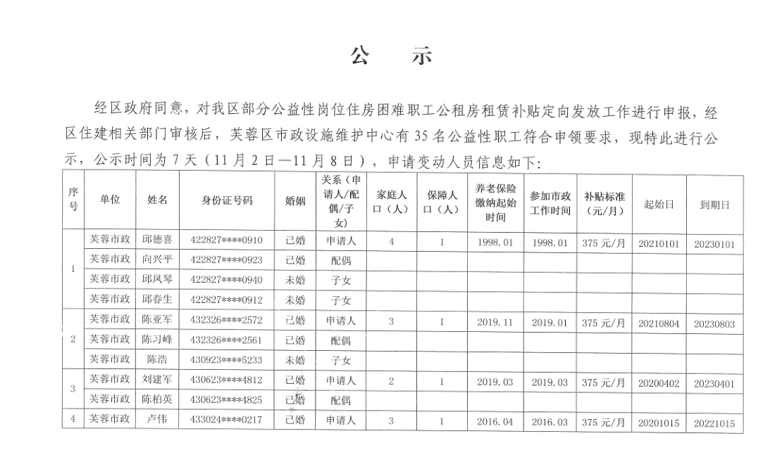 关于公益性岗位公租房租赁补贴申请人员的信息公示