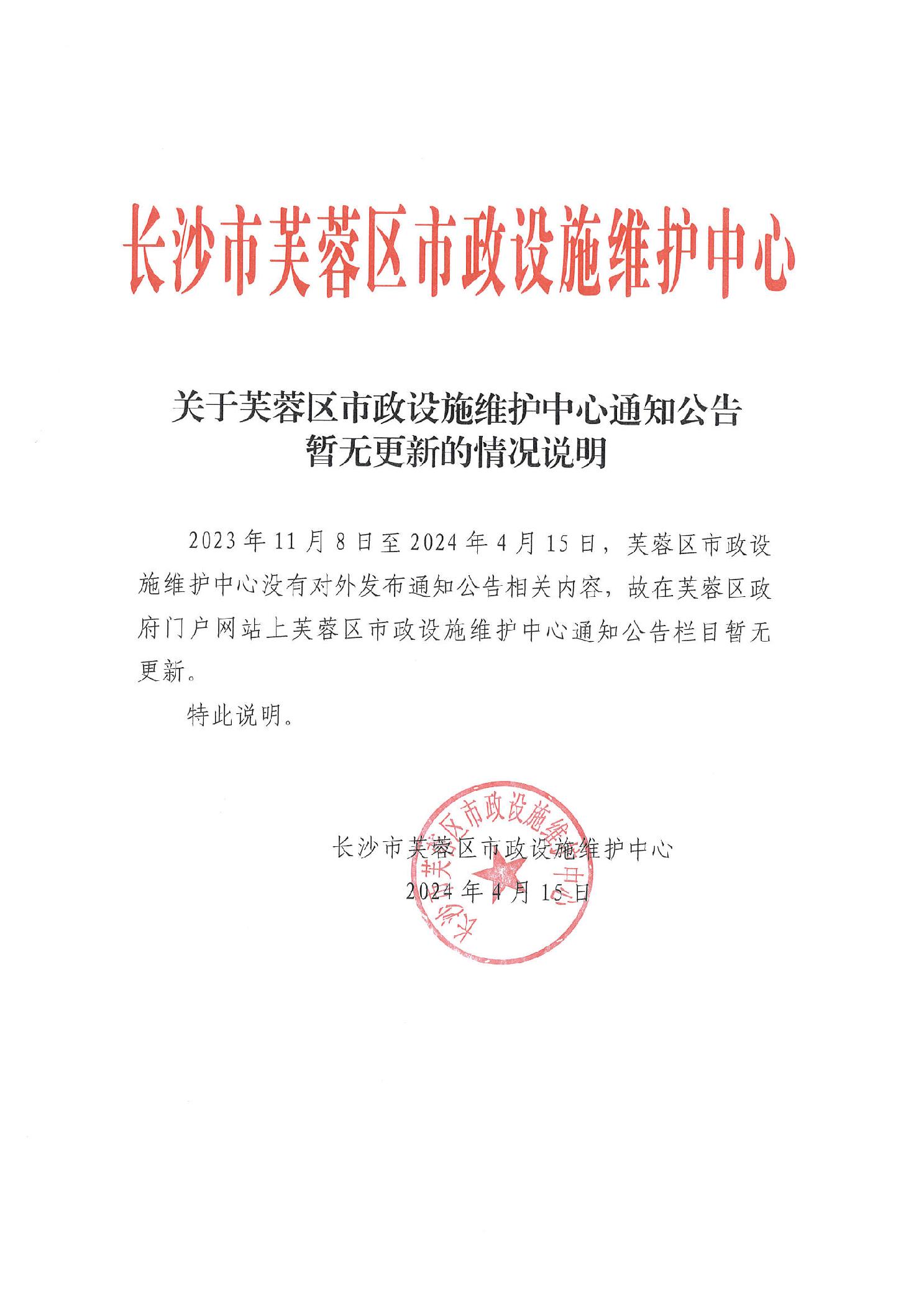 关于芙蓉区市政设施维护中心通知公告暂无更新的情况说明