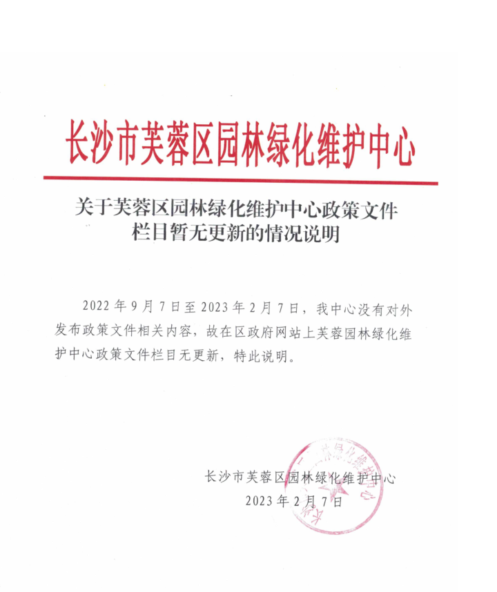 关于芙蓉区园林绿化维护中心政策文件栏目暂无更新的情况说明