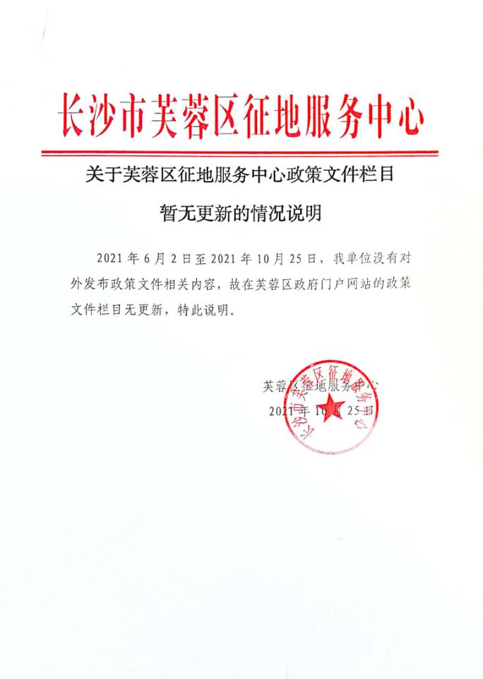 芙蓉区征地服务中心政策文件栏目暂无更新的情况说明