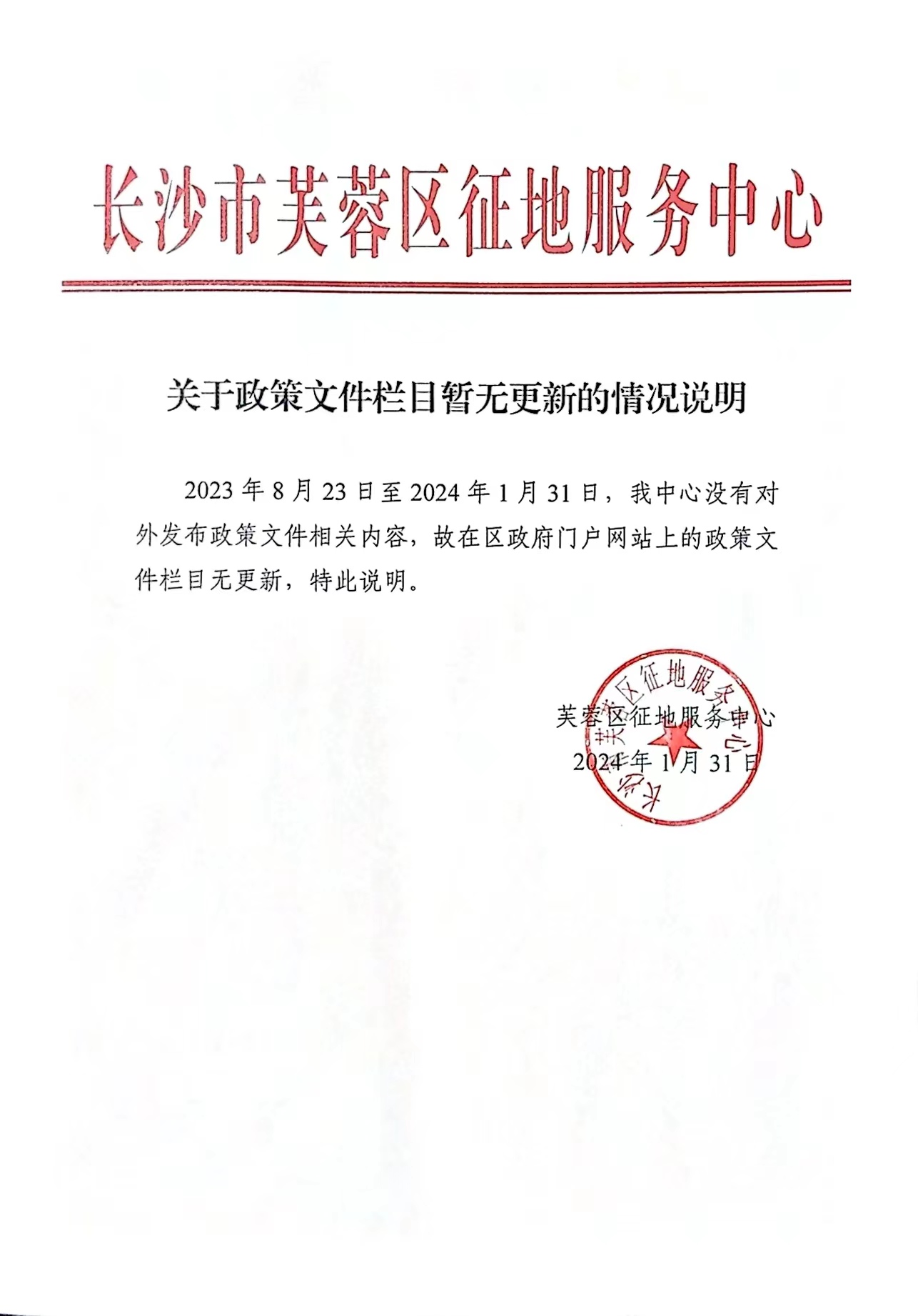 征地服务中心关于政策文件栏目暂无更新的情况说明