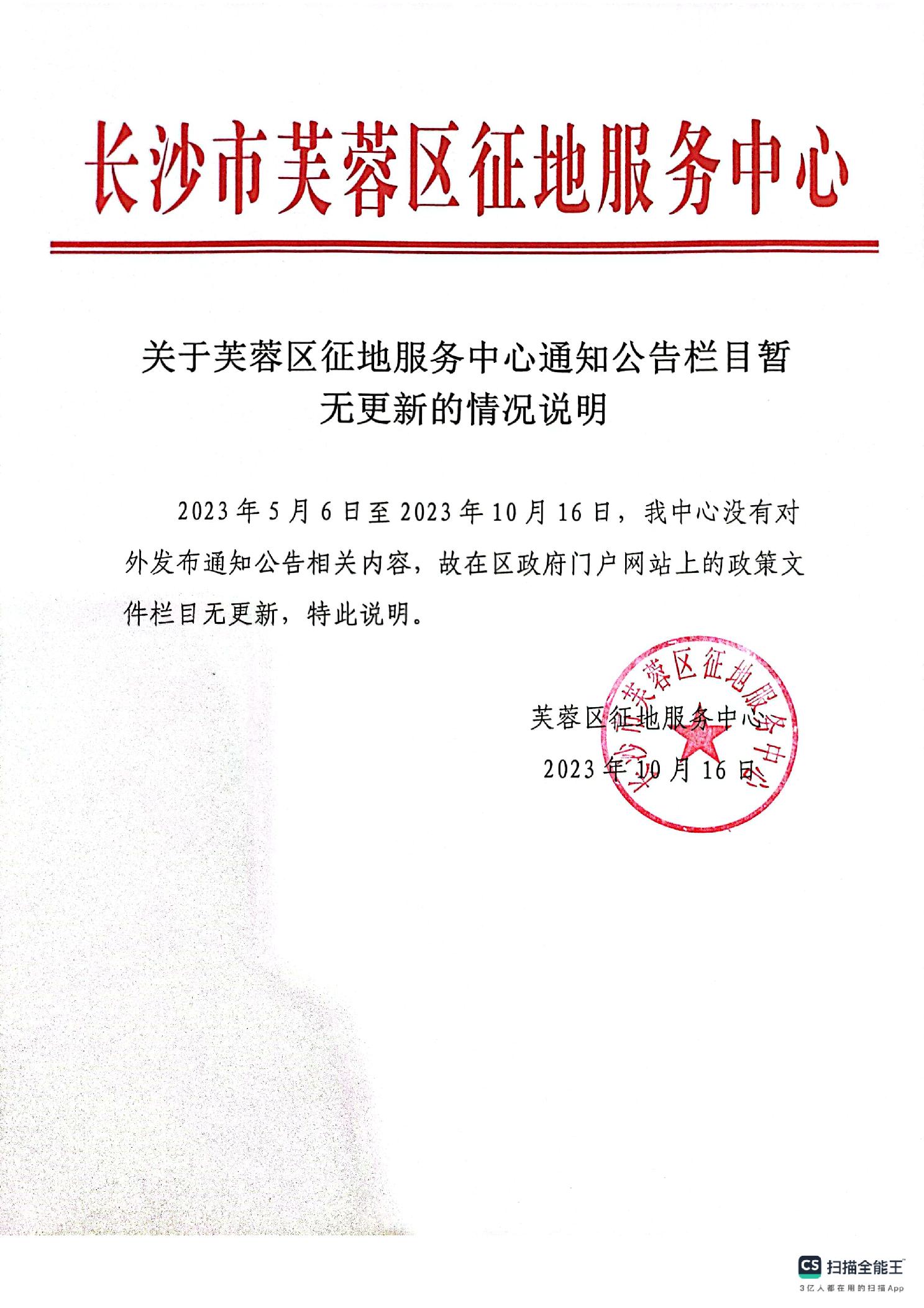 关于芙蓉区征地服务中心通知公告栏目暂无更新的情况说明