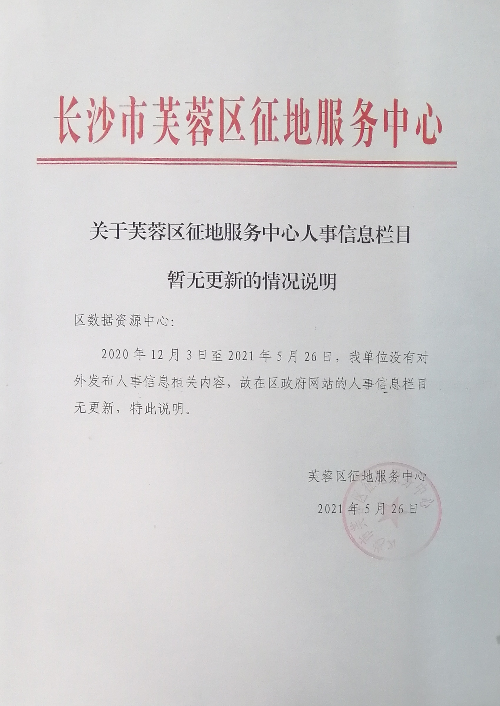 关于芙蓉区征地服务中心人事信息栏目暂无更新的情况说明