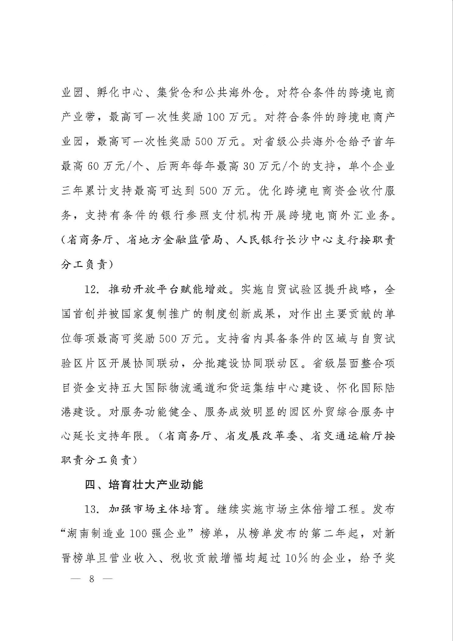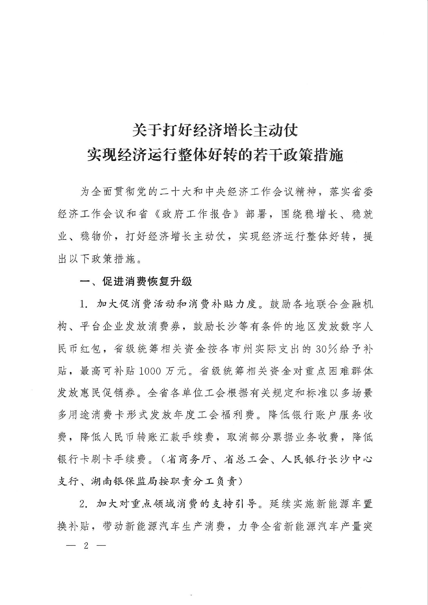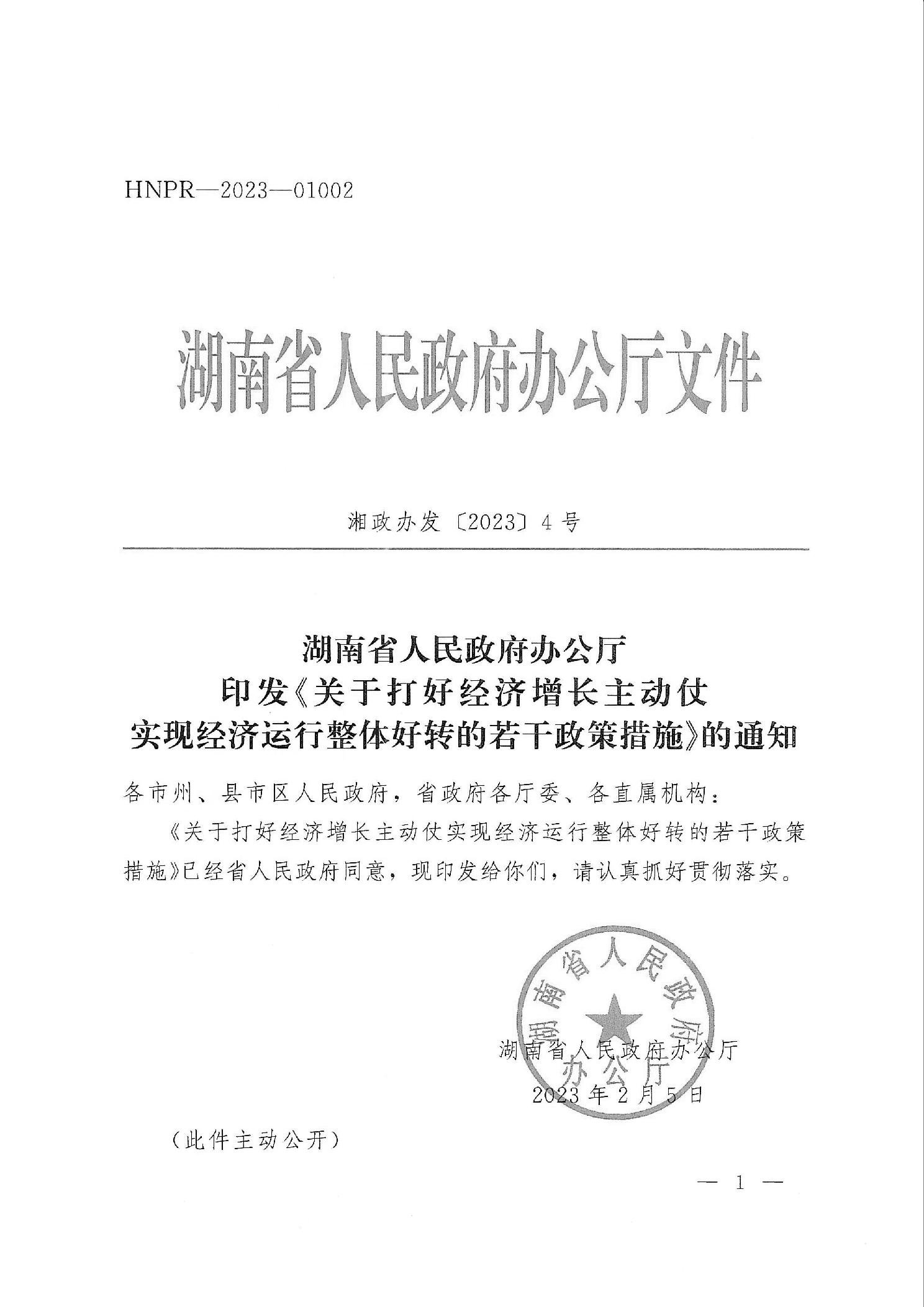 湖南省龙8国际办公厅印发《关于打好经济增长主动仗实现经济运行整体好转的若干政策措施》的通知
