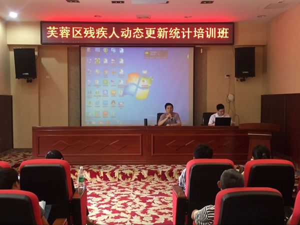 为做好2017年残疾人基本服务状况和需求信息数据动态更新工作,根据《中国残联办公厅关于做好2017年残疾人基本服务状况和需求信息数据动态更新工作的通知》以及省、市残联有关文件精神,经芙蓉区领导批准,芙蓉区残联于2017年6月20日举办了全区残疾人基本服务状况和需求信息数据动态更新工作培训班。芙蓉区残联机关人员、各街道残联专干、社区(村)残协专干共100余人参加会议。