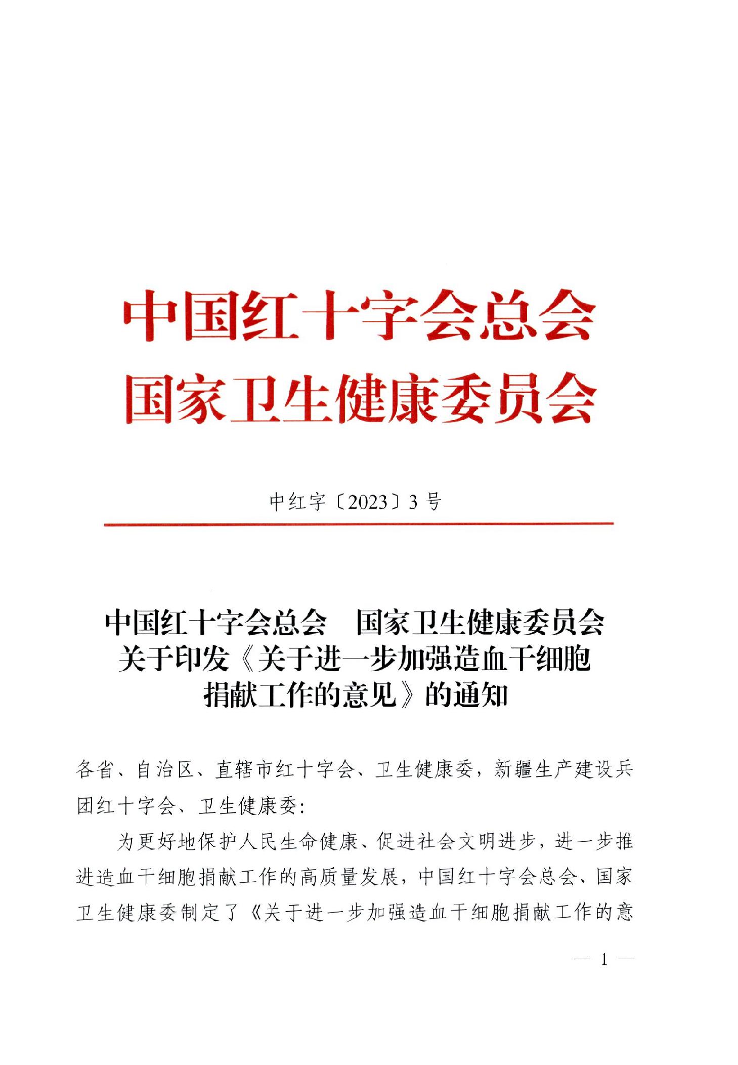 中国红十字会总会 国家卫生健康委员会关于印发《关于进一步加强造血干细胞捐献工作的意见》的通知