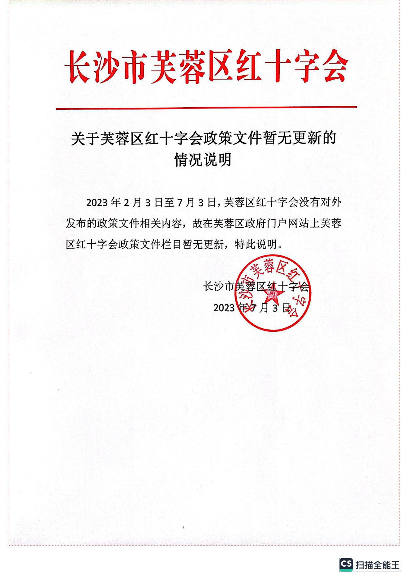 关于芙蓉区红十字会政策文件暂无更新的情况说明