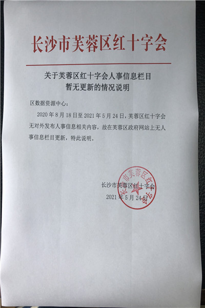 关于芙蓉区红十字会人事信息栏目暂无更新的情况说明