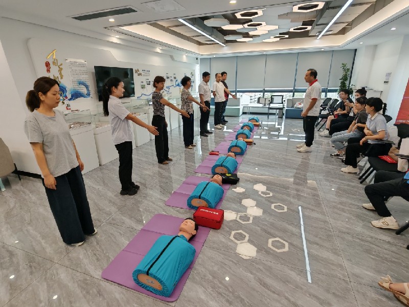培训采取理论授课与实操演练相结合的方式,理论课程涵盖工伤预防、工伤保险职业伤害保障、应急救护概论、心肺复苏、创伤救护等核心内容,由省应急厅专家、芙蓉区红十字会应急救护培训师资团队进行专业授课。实操环节重点培训心肺复苏、AED使用、气道异物梗阻处理及止血包扎等急救技能,通过“手把手”教学确保学员掌握技术要领。全体参训人员通过严格考核,获得红十字救护员证书。