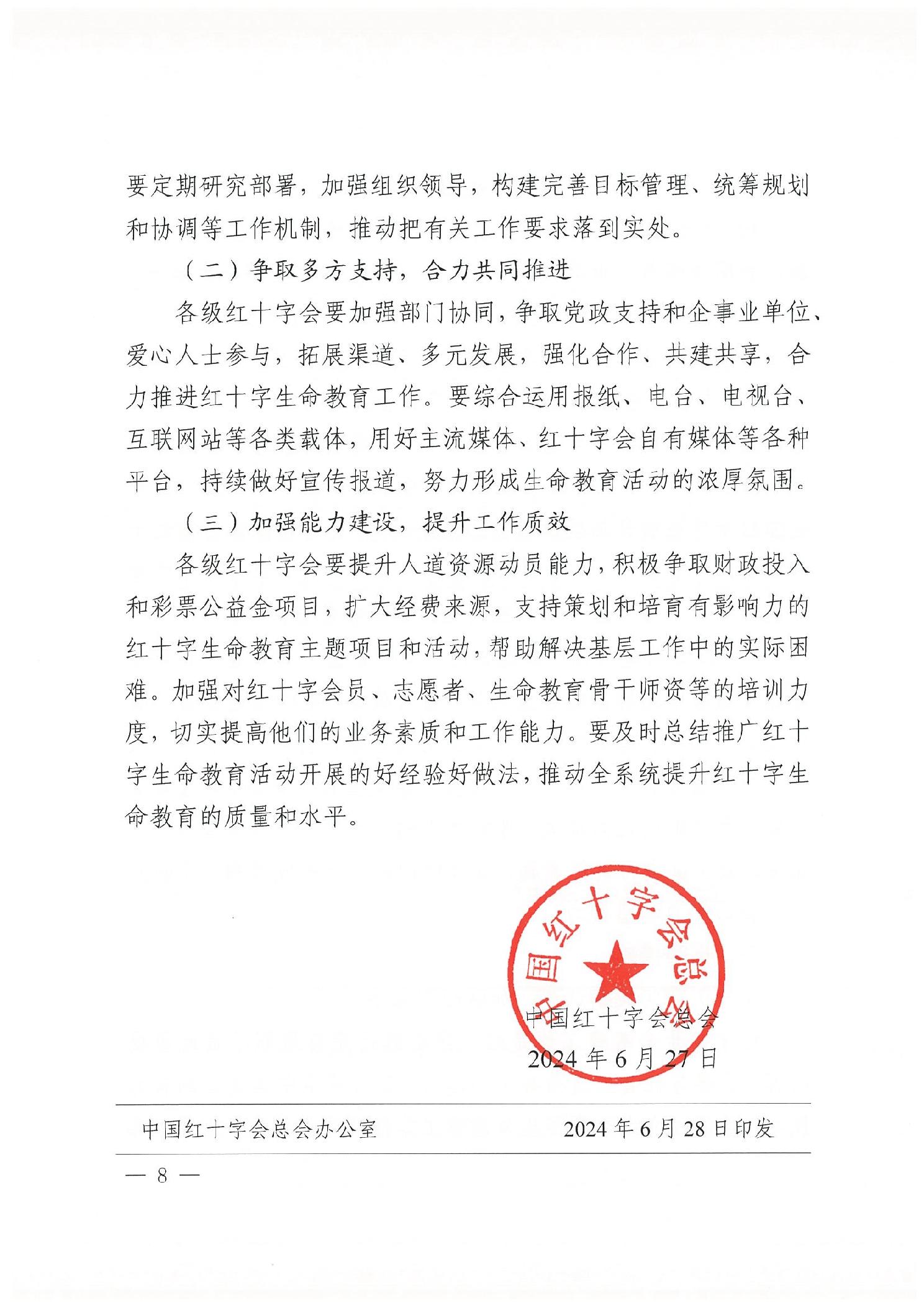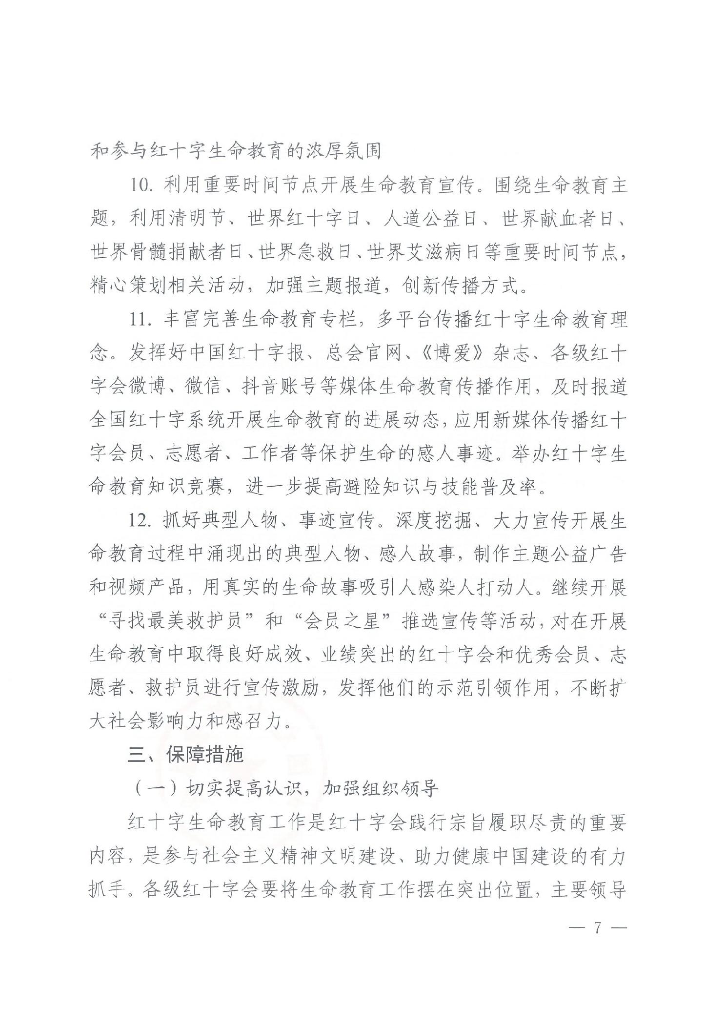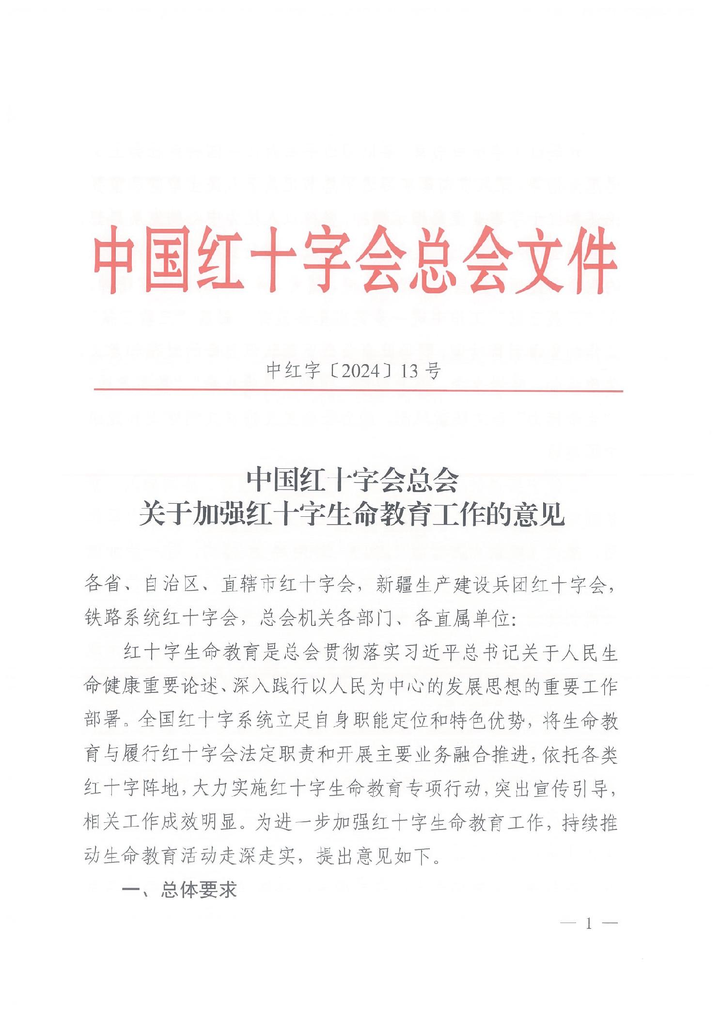 中国红十字会总会关于加强红十字生命教育工作的意见