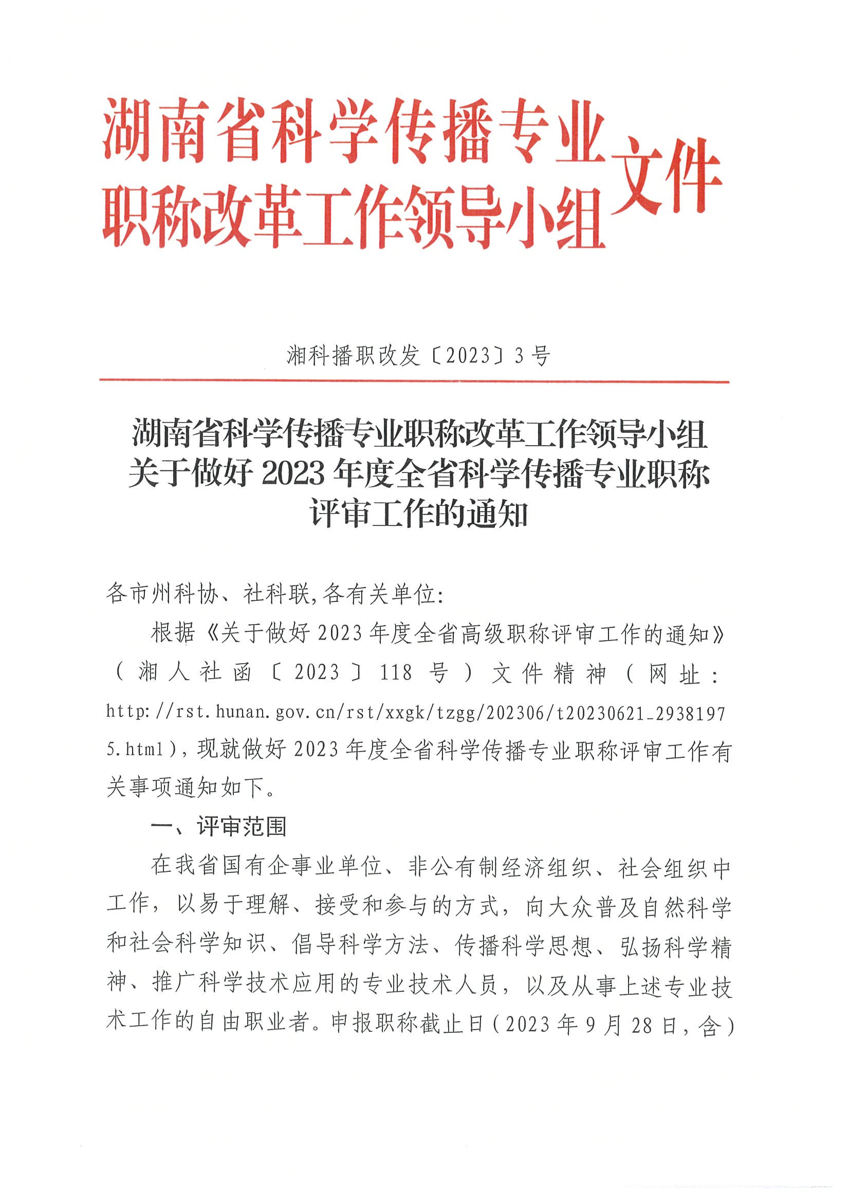 关于做好2023年度全省科学传播专业职称评审工作的通知
