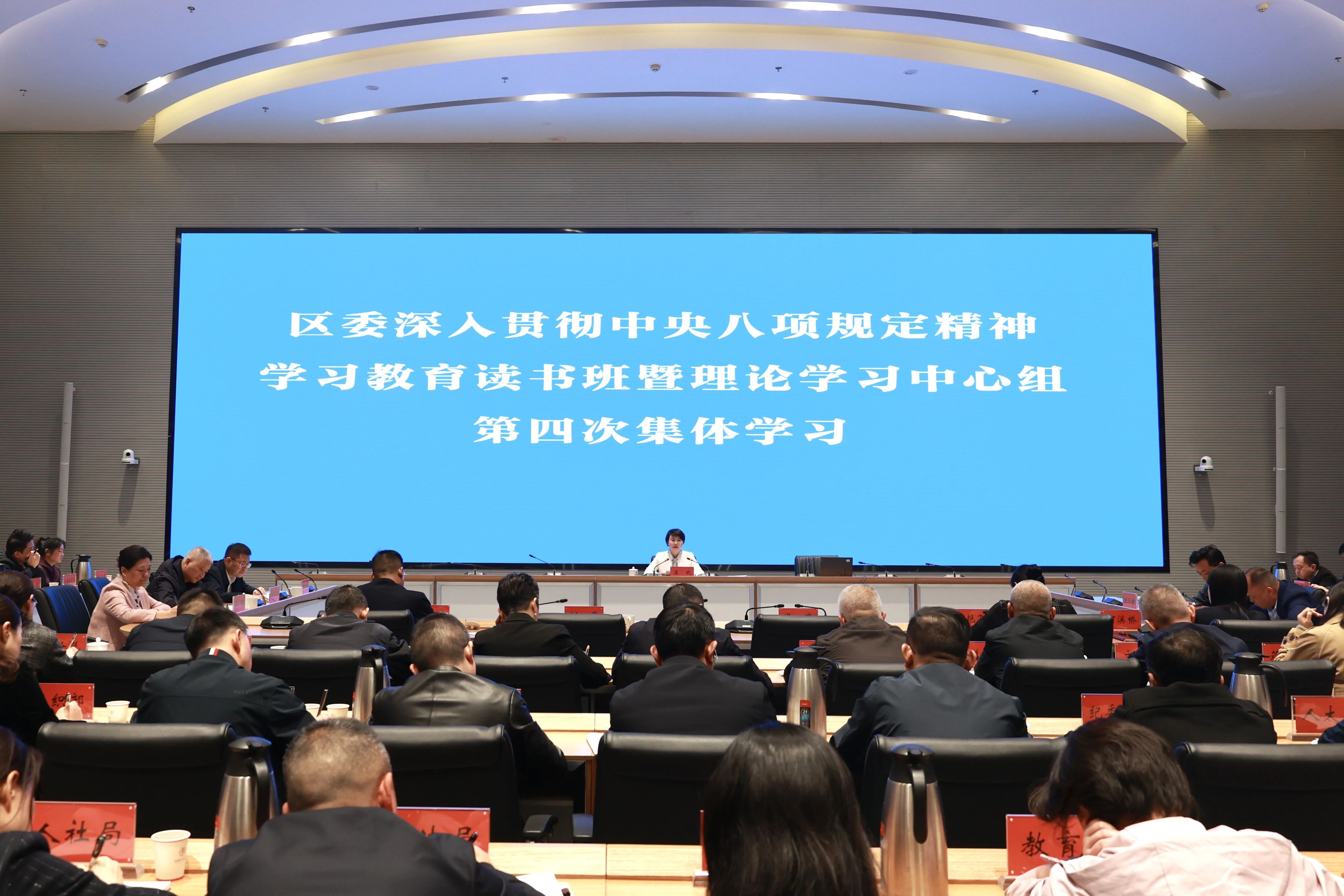集中学习研讨阶段邀请了相关专家作《深入学习贯彻中央八项规定精神》专题辅导,区委理论学习中心组成员围绕主题、结合工作进行交流发言。