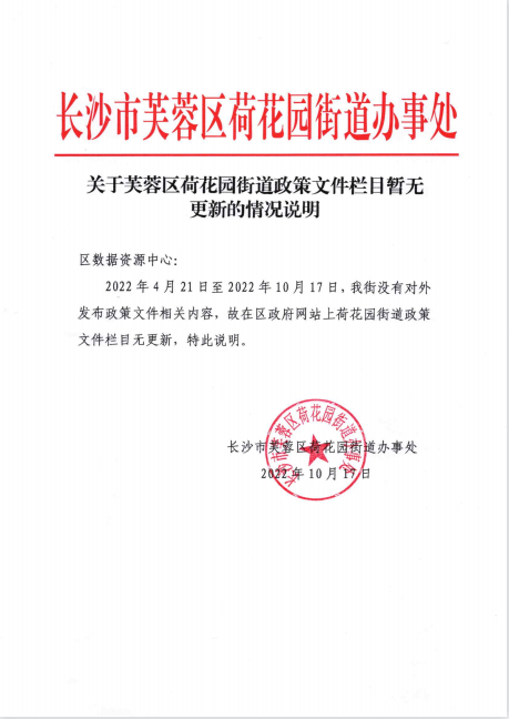 关于芙蓉区荷花园街道政策文件栏目暂无更新的情况说明