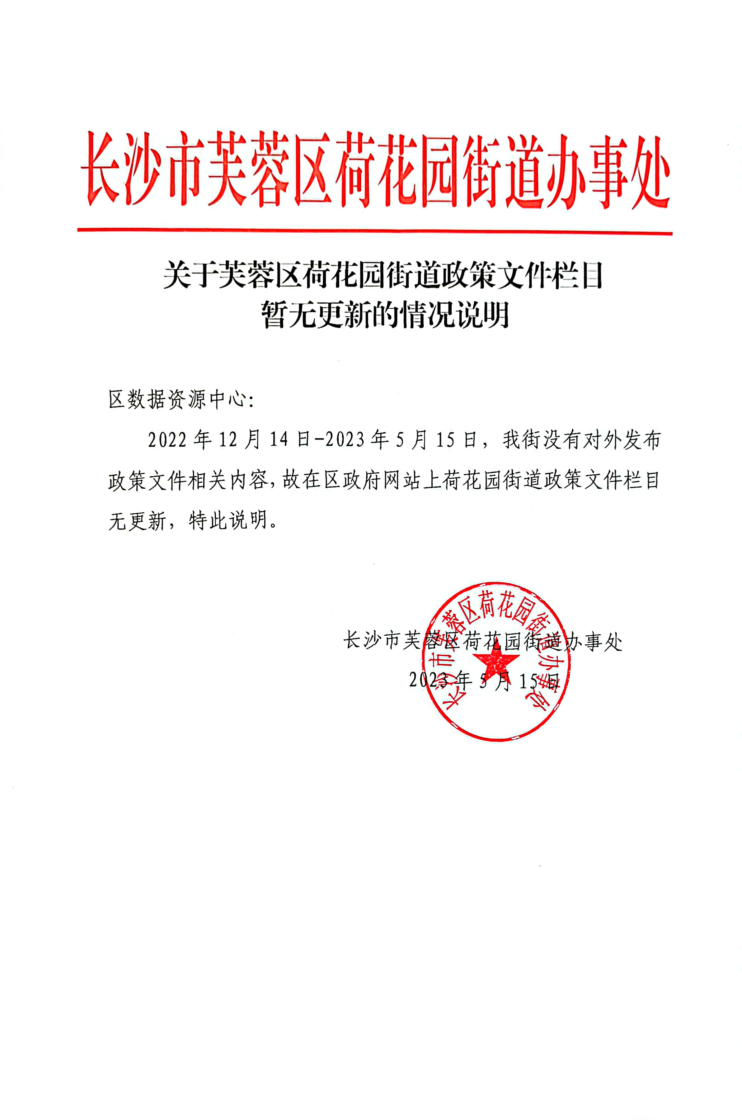 关于芙蓉区荷花园街道政策文件栏目暂无更新的情况说明