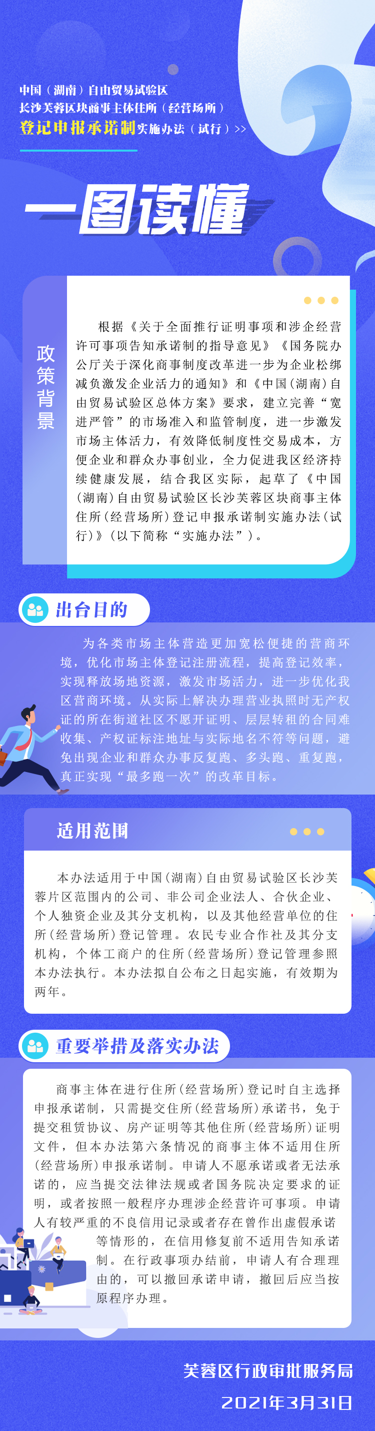 图解:《中国(湖南)自由贸易试验区长沙芙蓉区块商事主体住所(经营场所) 登记申报承诺制实施办法(试行)》政策解读