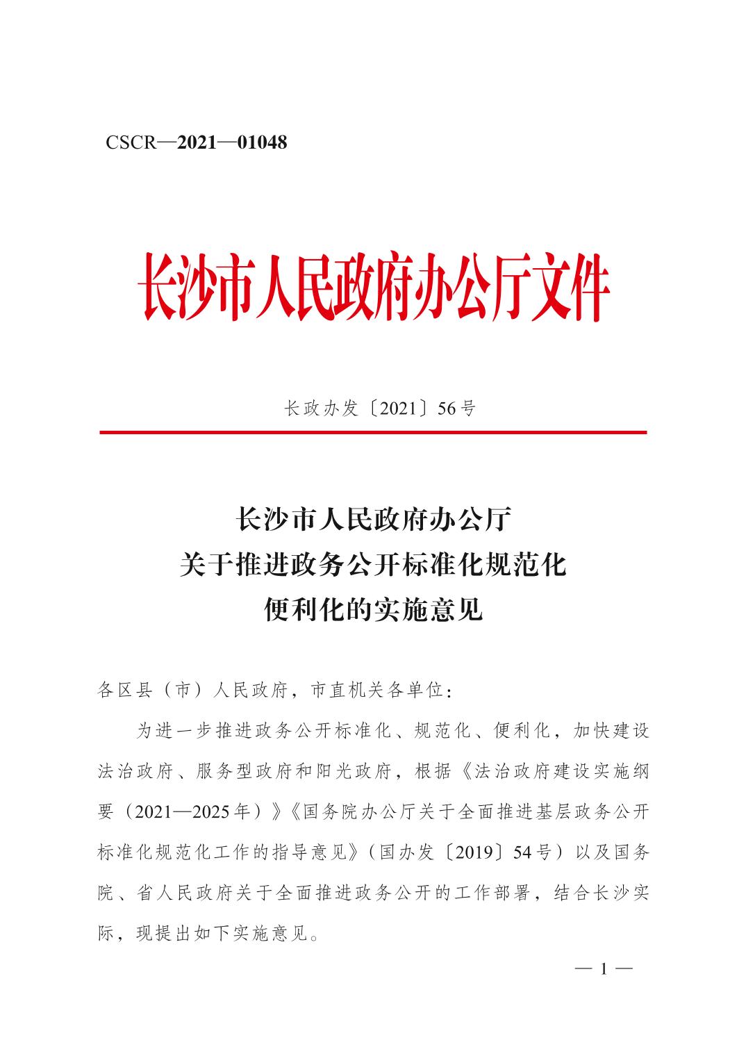 长沙市龙8国际办公厅关于推进政务公开标准化规范化便利化的实施意见