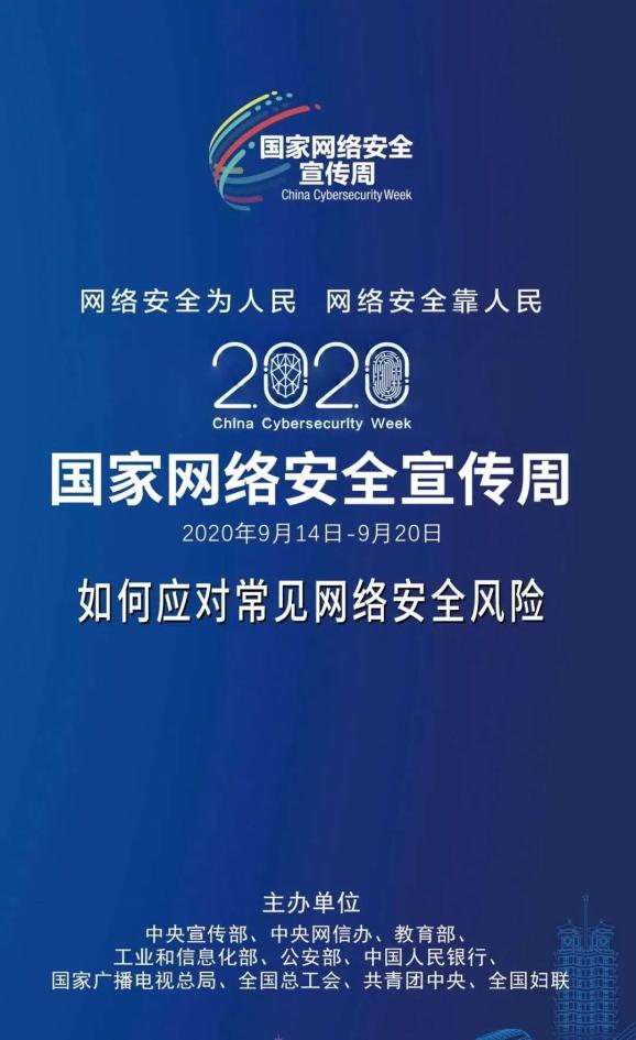 2020年国家网络安全宣传周主题为:网络安全为人民,网络安全靠人民。
